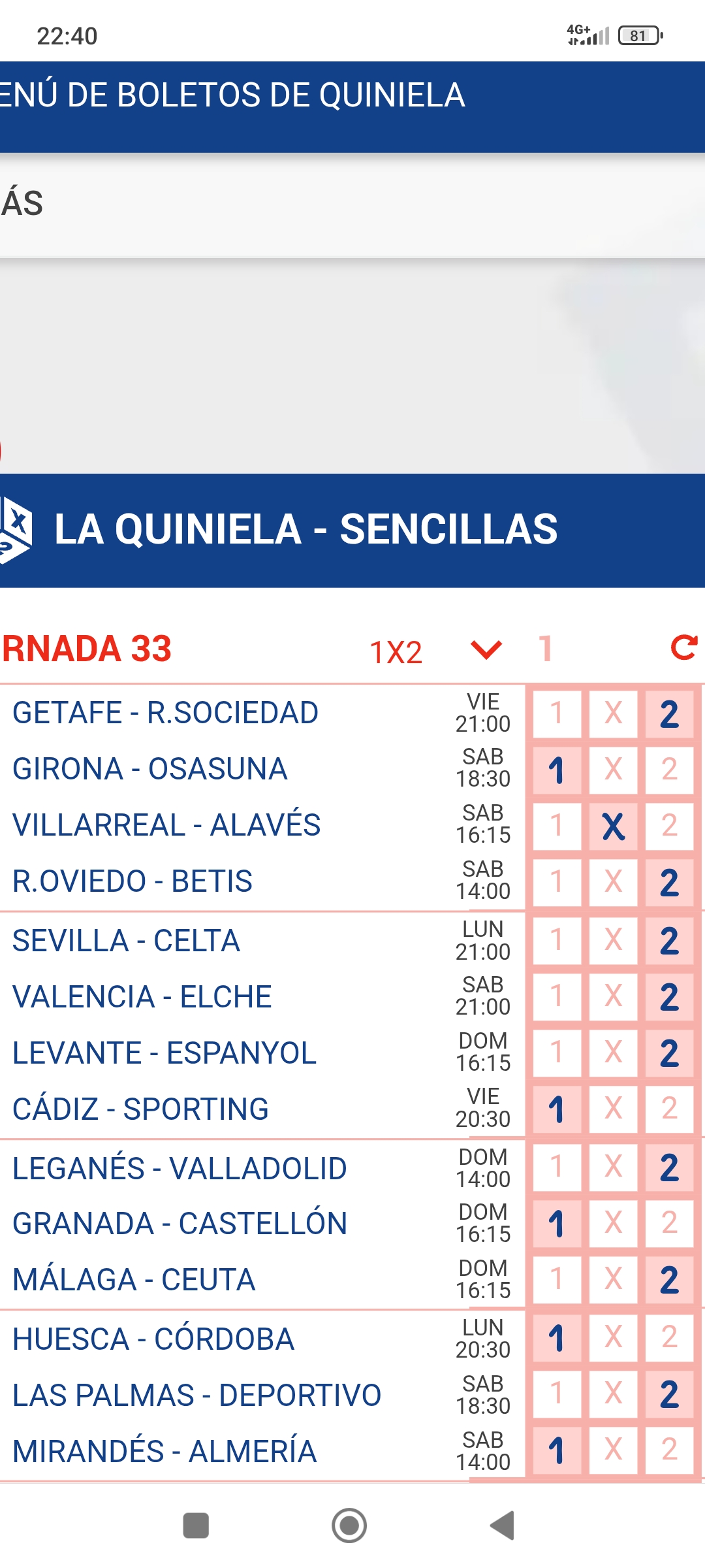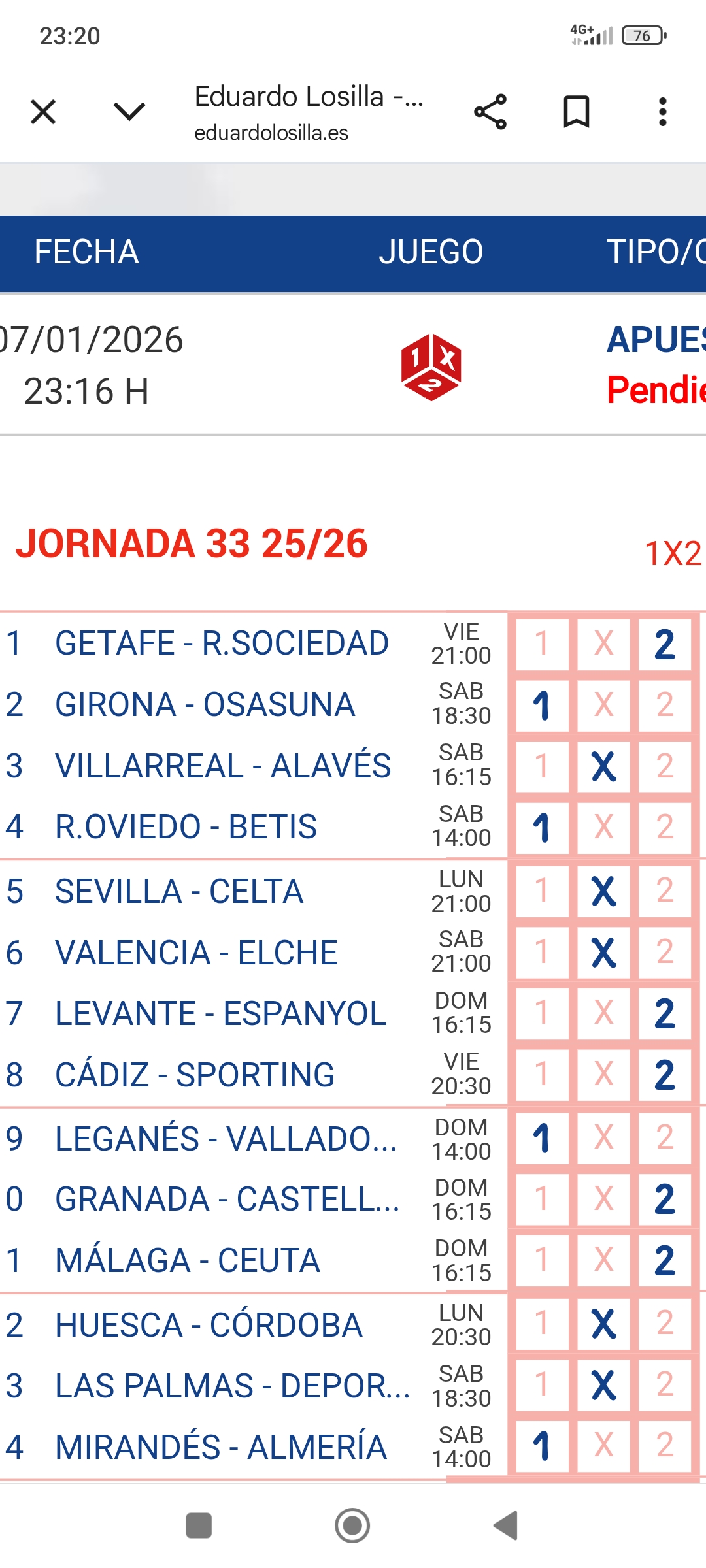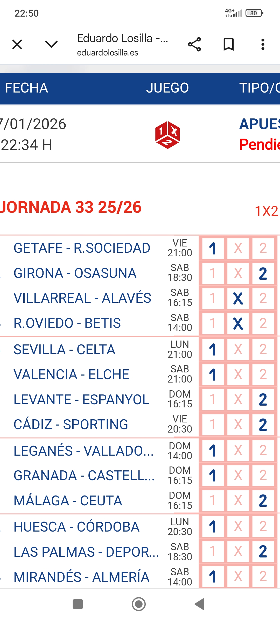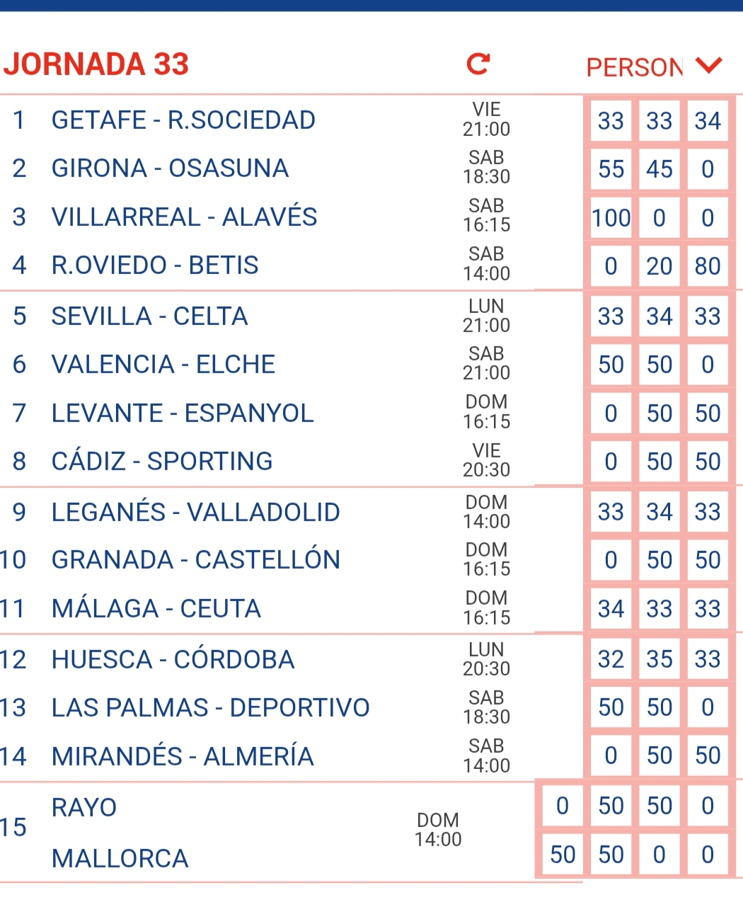Pronóstico quiniela de la jornada 33, con partidos de La Liga y Segunda División.