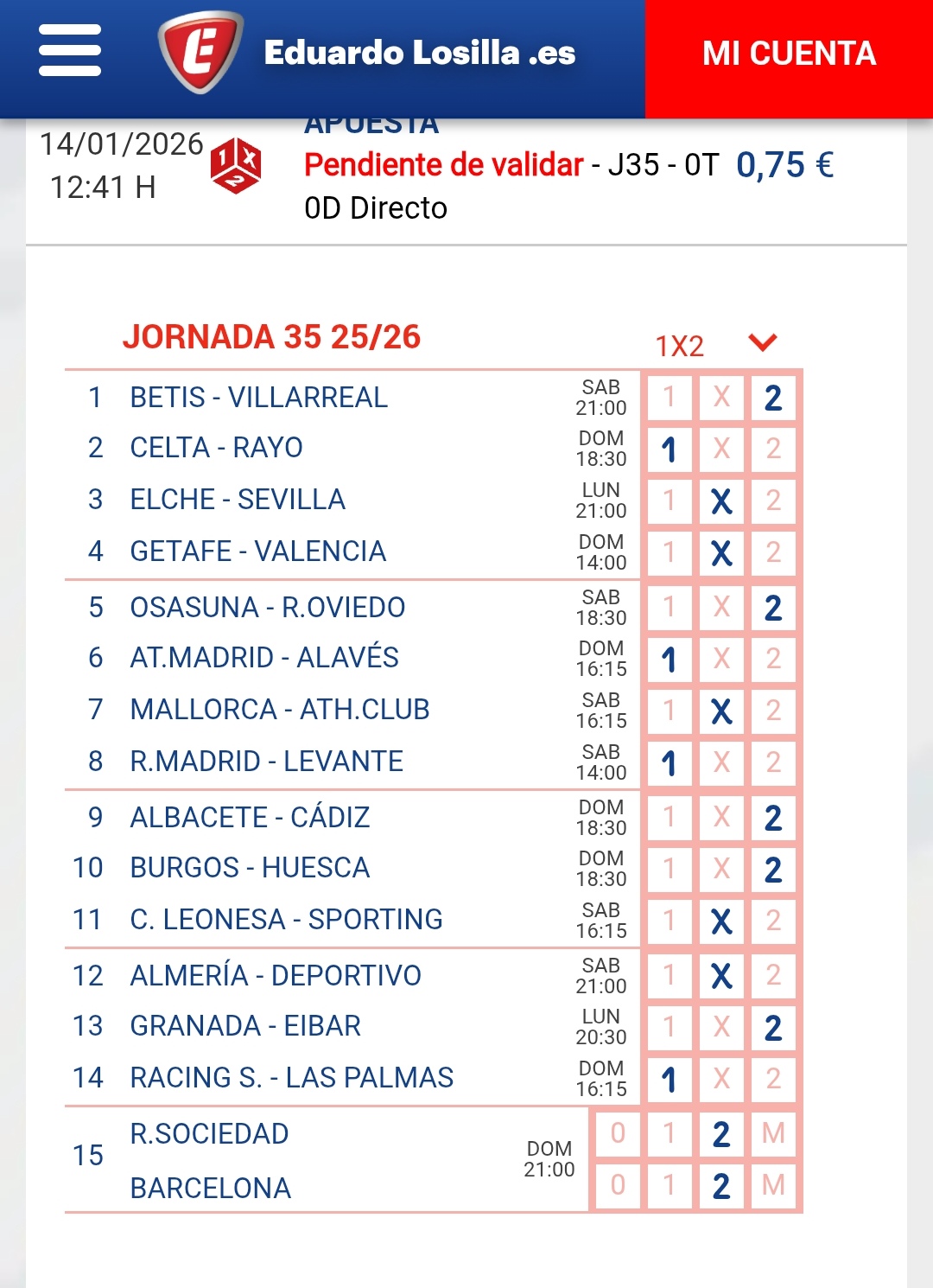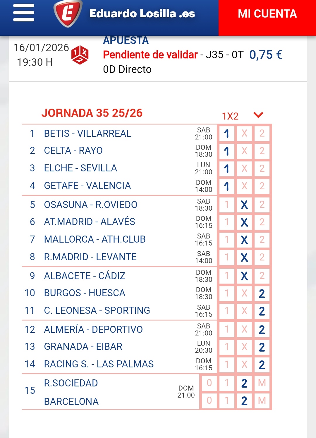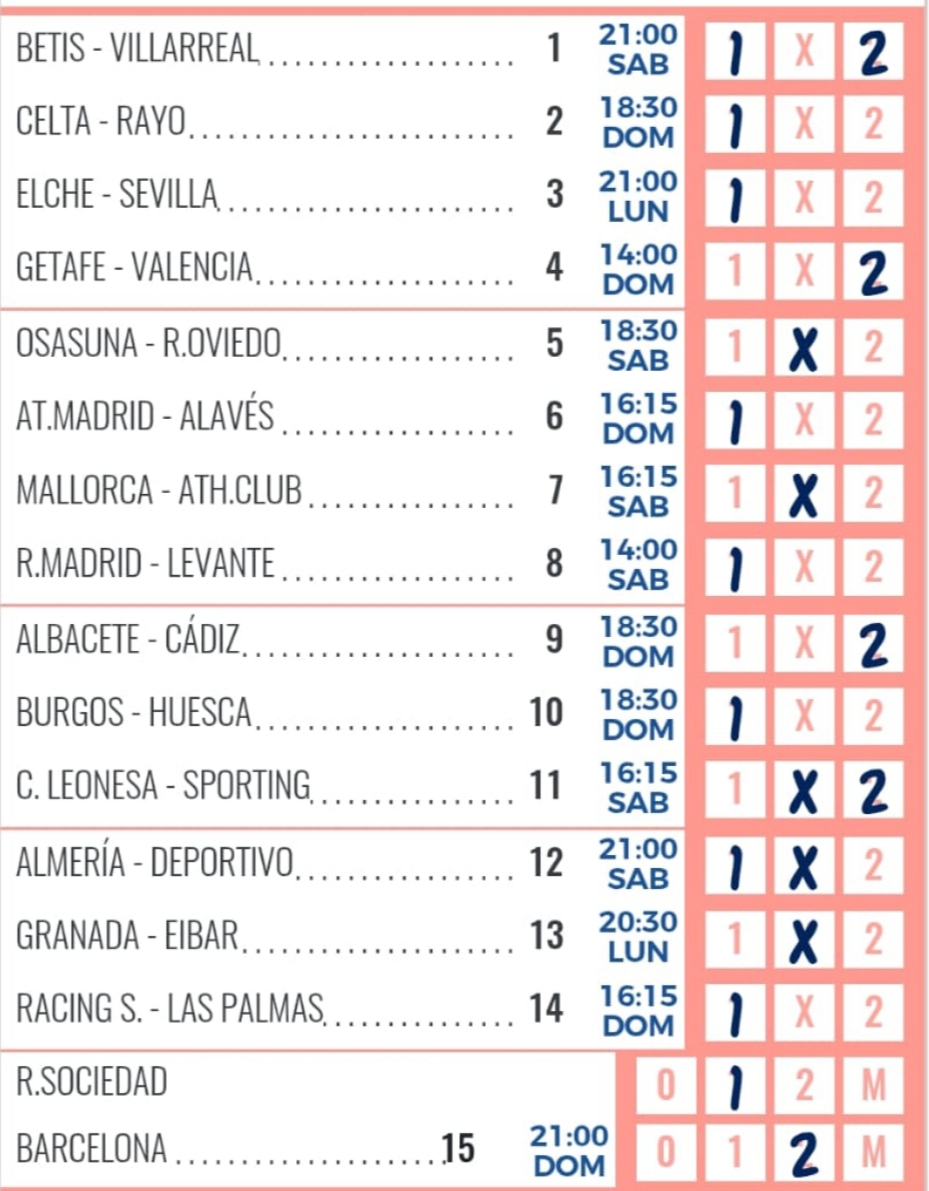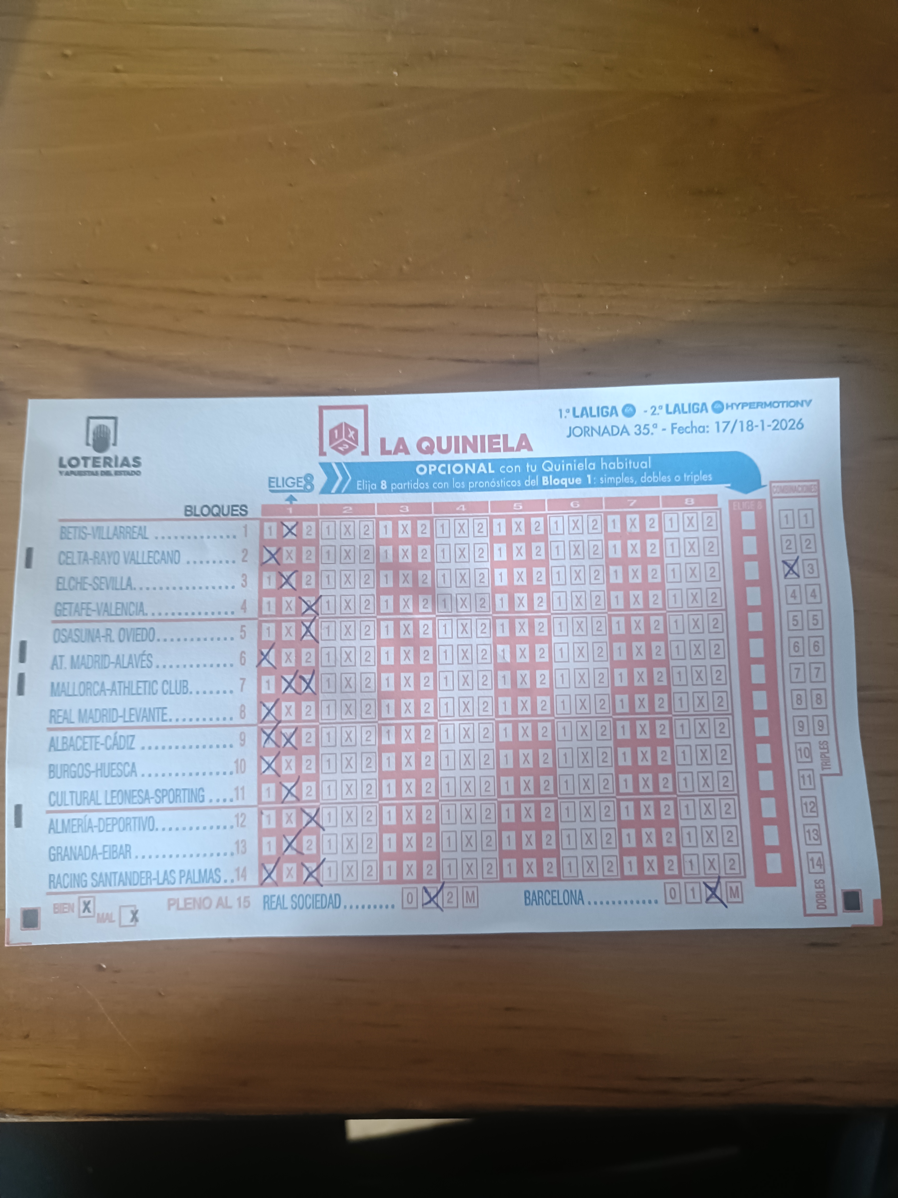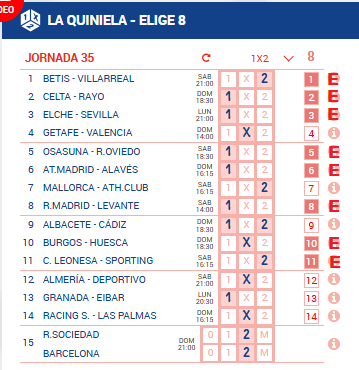Pronóstico quiniela de la jornada 35, con partidos de La Liga y Segunda División.