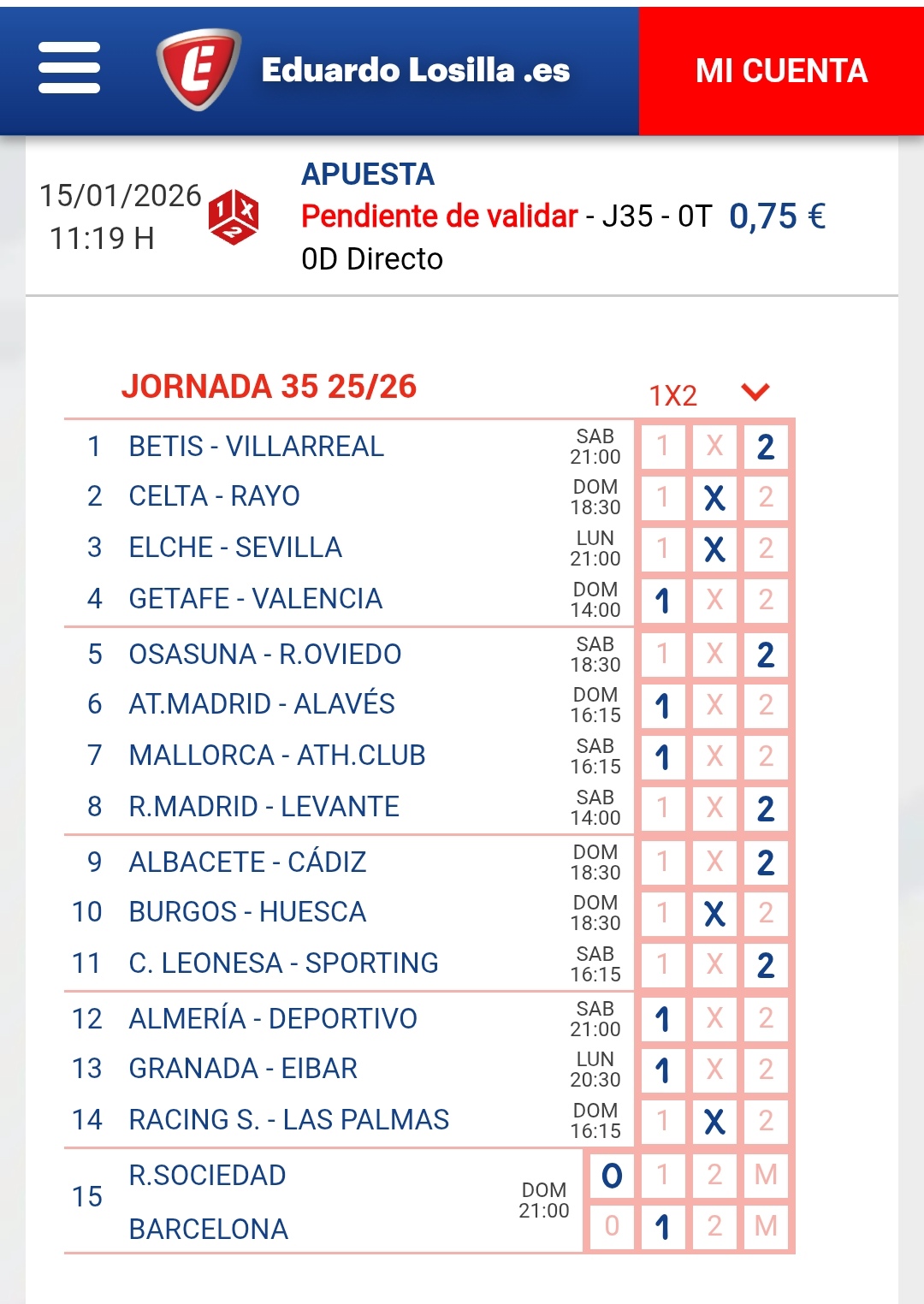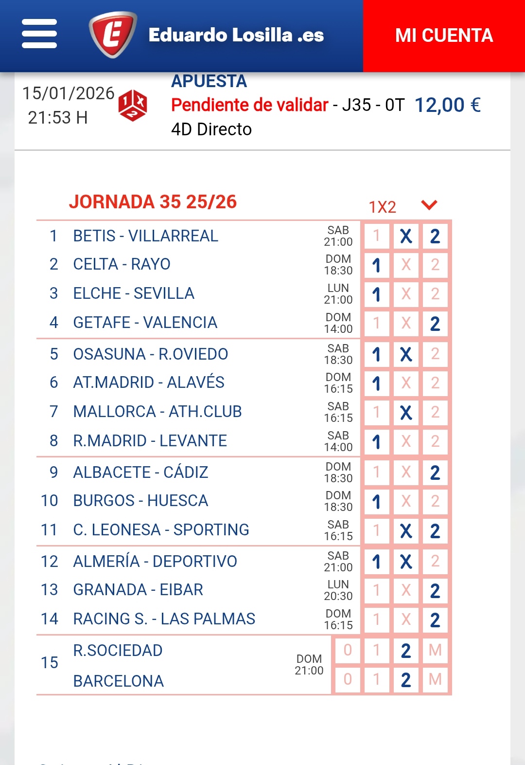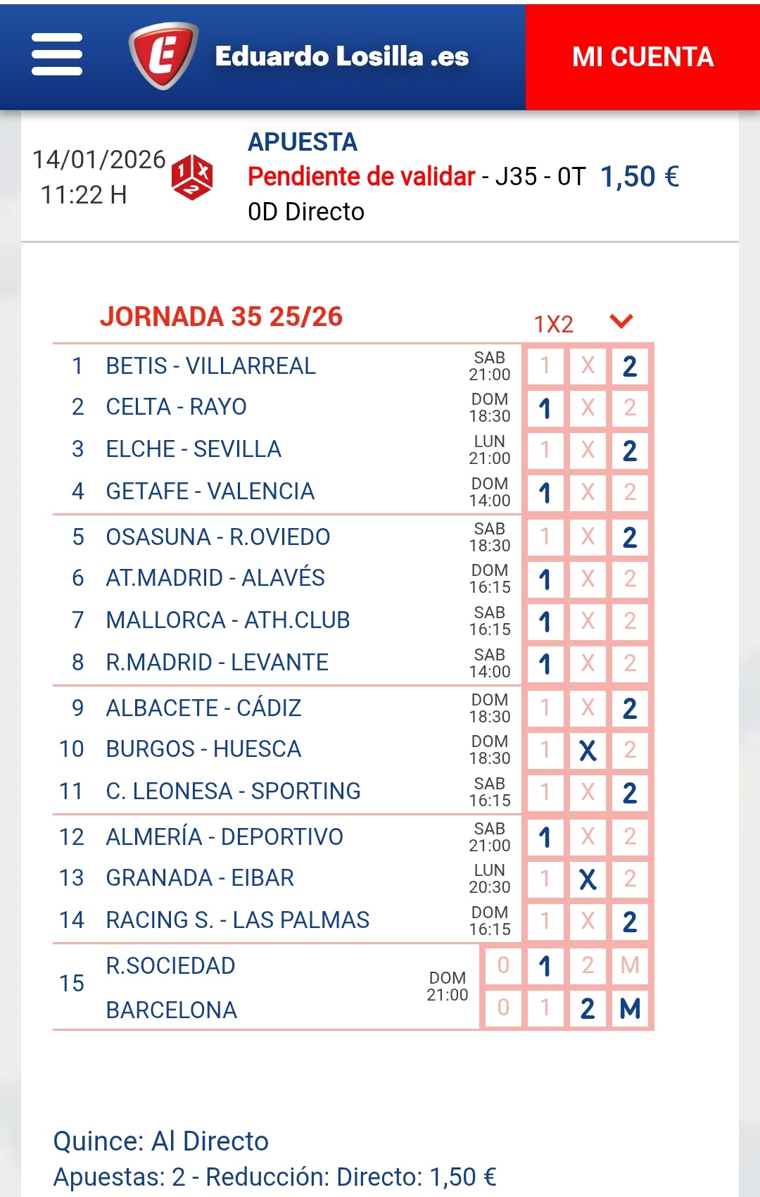 Pronóstico quiniela de la jornada 35, con partidos de La Liga y Segunda División.