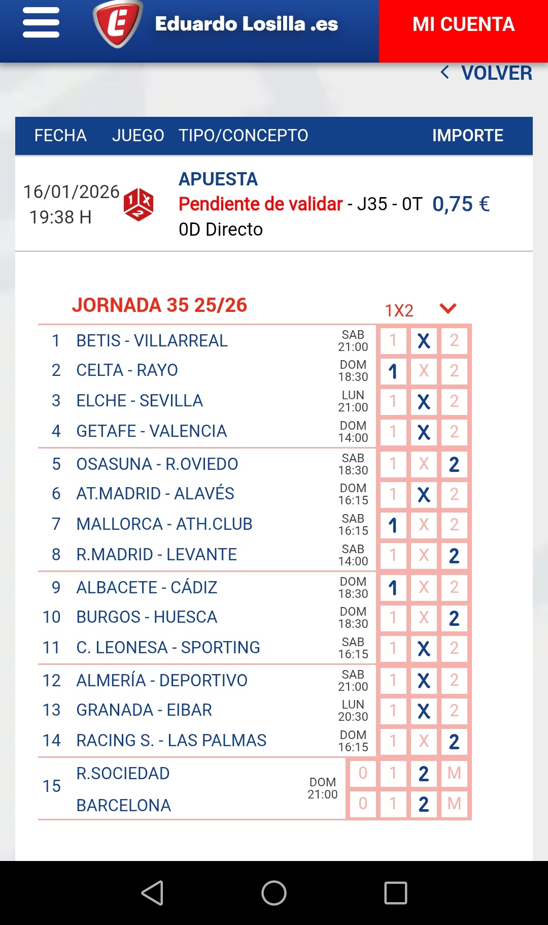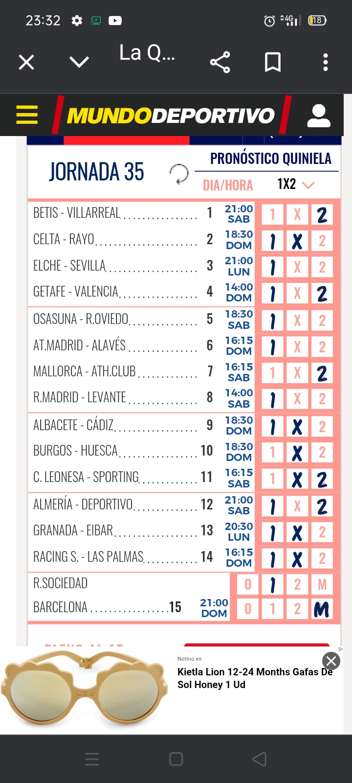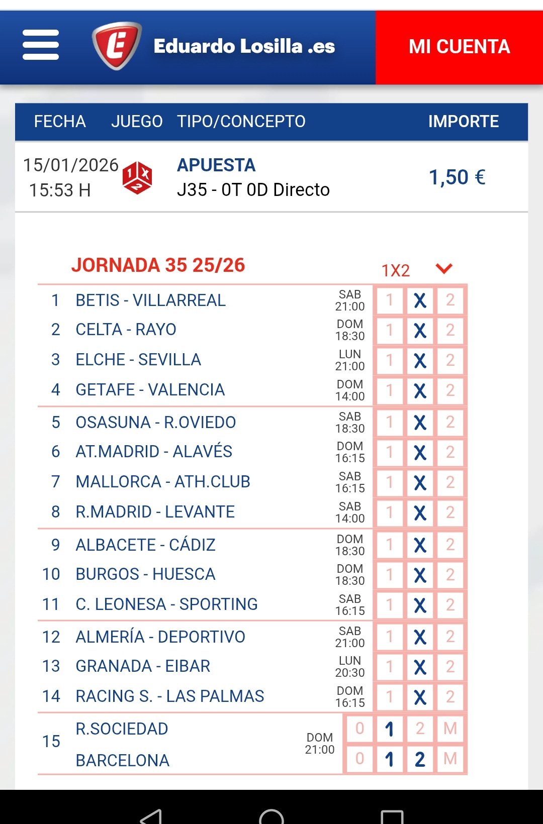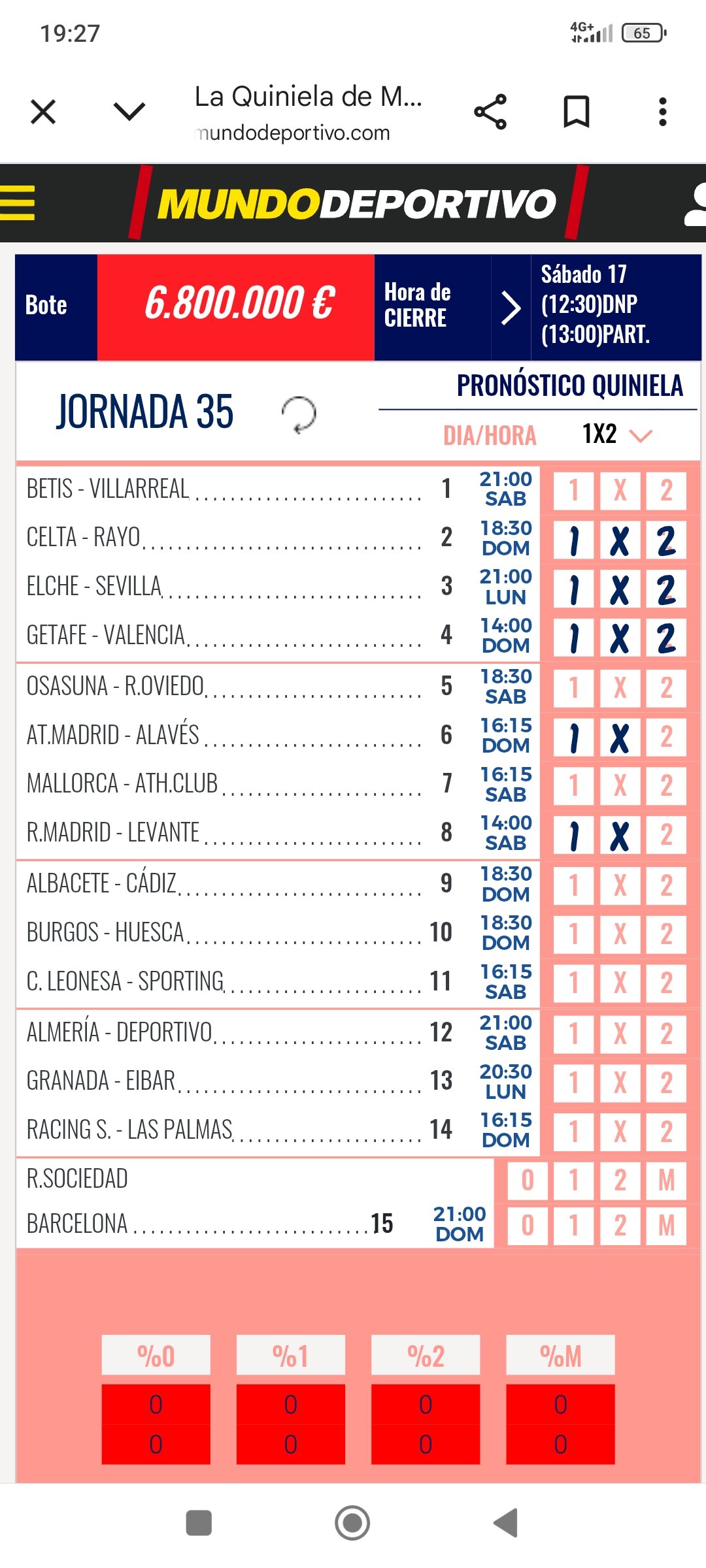 Pronóstico quiniela de la jornada 35, con partidos de La Liga y Segunda División.