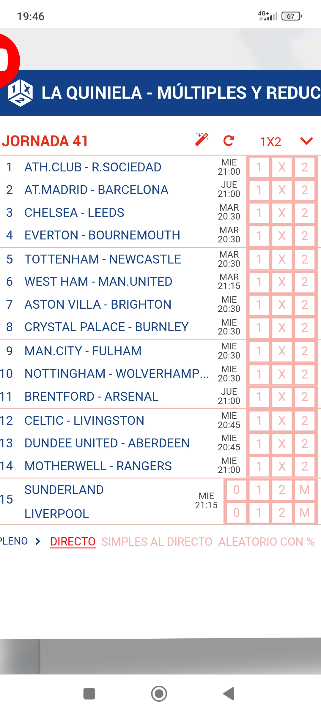 Pronóstico quiniela de la jornada 41, con partidos de Copa del Rey ,Premier League y Premiership.