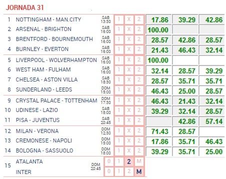 Futbolín @futbolinn MEM · (0 p) #- Concurso Quiniela15 @futbolinn lleva 0 aciertos (puntos) esta temporada y va en la posición #- del ranking del concurso de quinielistas. · hace 12 horas Esta por si hay muchos unos 🙈😂😉😇🍀🤞💪💪🍷🍷🍷 · Responder (2) Expandir comentario @adyta TOP MEM ↪ futbolinn · (190 p) #259 Concurso Quiniela15 @adyta lleva 190 aciertos (puntos) esta temporada y va en la posición #259 del ranking del concurso de quinielistas. · hace 12 horas 😊😊😊ESA apuesta va producir muchos dolores de cabeza! 😊😊😊👍😜🍷🍷🍷 · Responder (1) Expandir comentario Futbolín @futbolinn MEM ↪ adyta · (0 p) #- Concurso Quiniela15 @futbolinn lleva 0 aciertos (puntos) esta temporada y va en la posición #- del ranking del concurso de quinielistas. · hace 11 horas 😂😂👍 😉😇, bueno pero también llevo algo más para lógica 😜🍀🤞🍷🍷🍷 · Responder (0) Expandir comentario