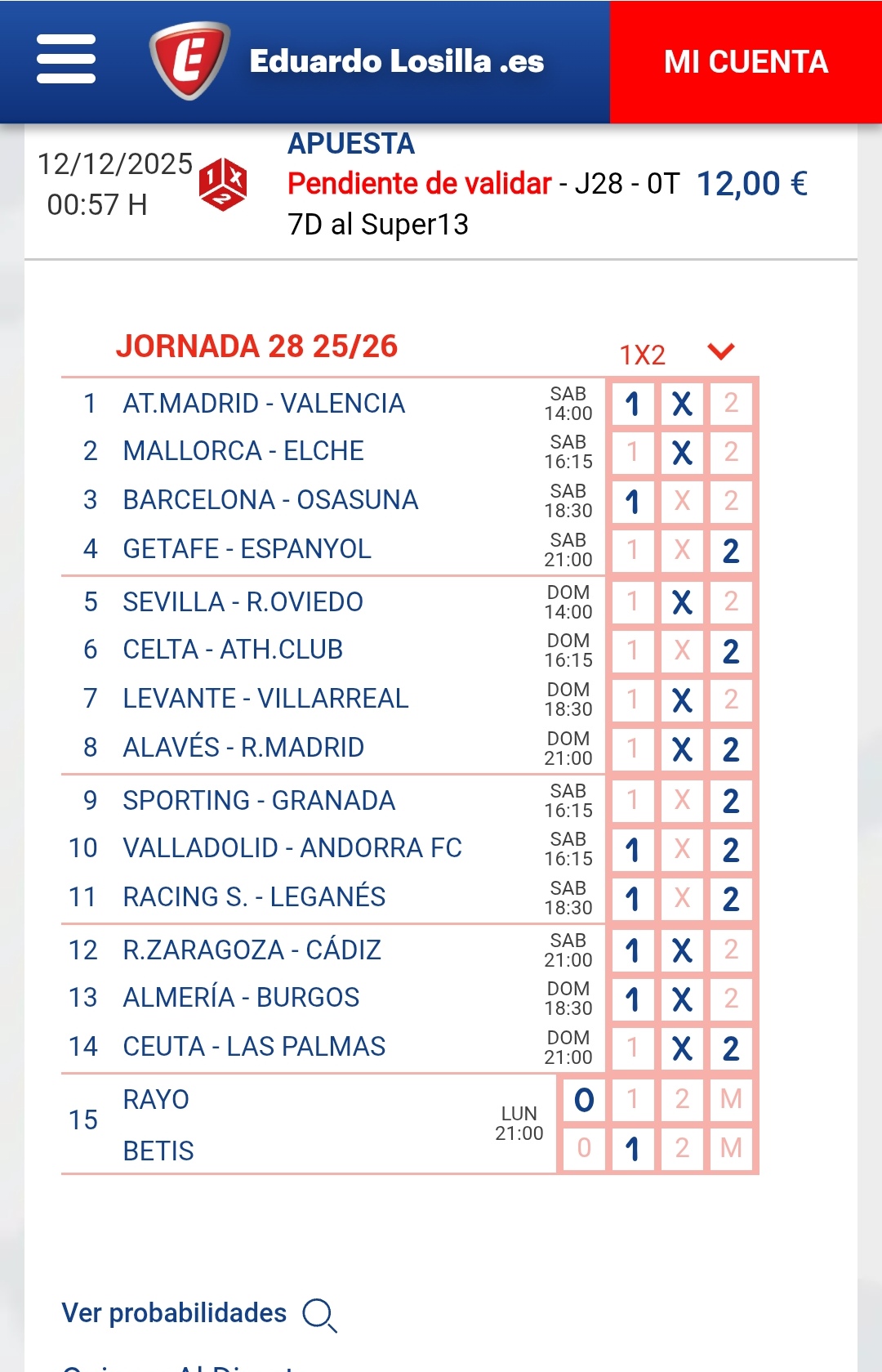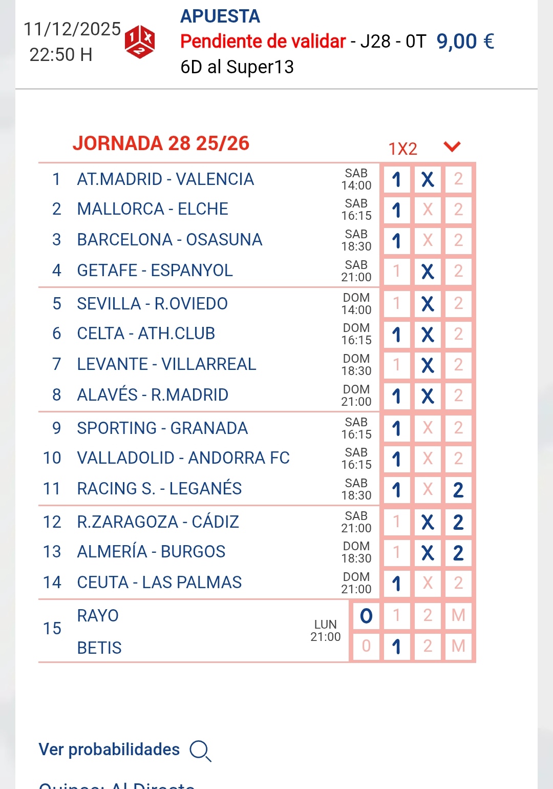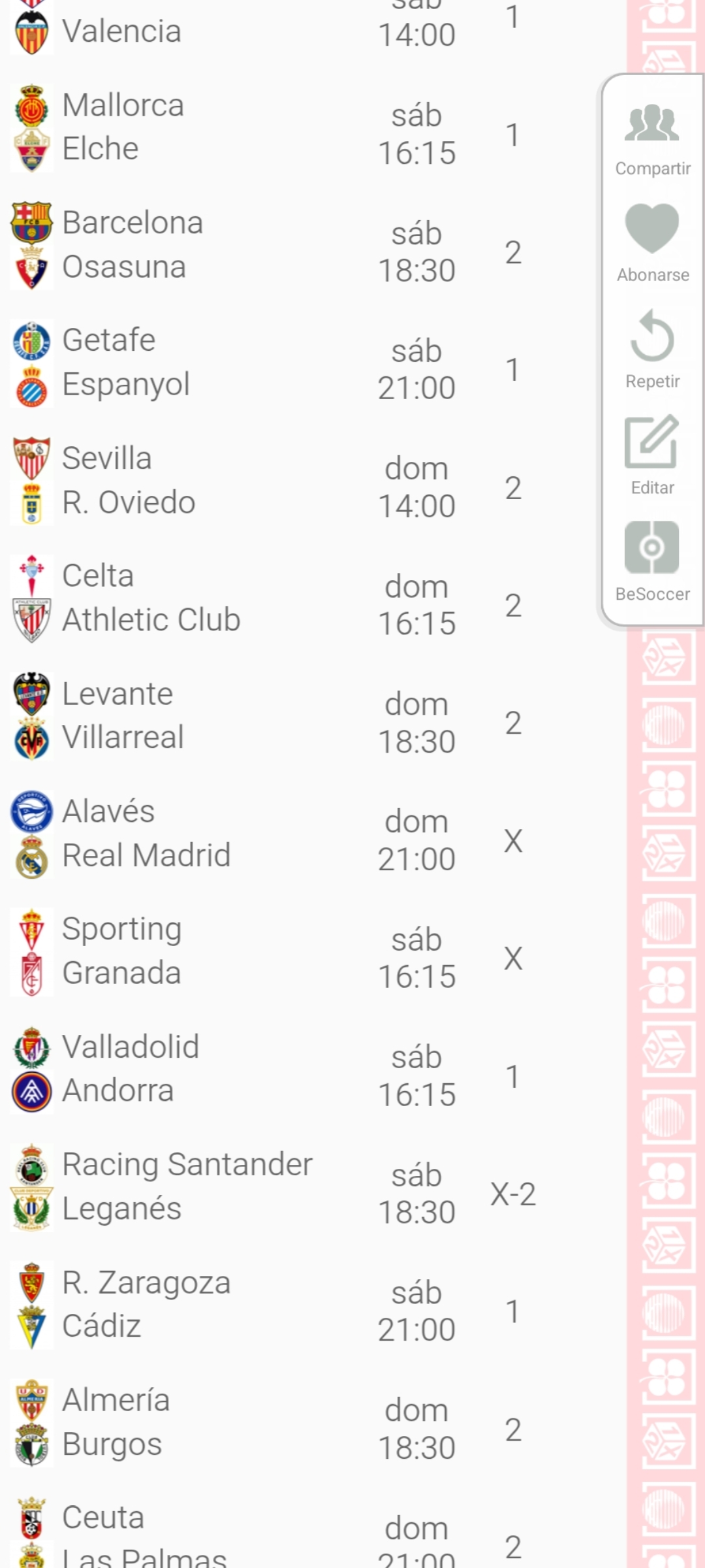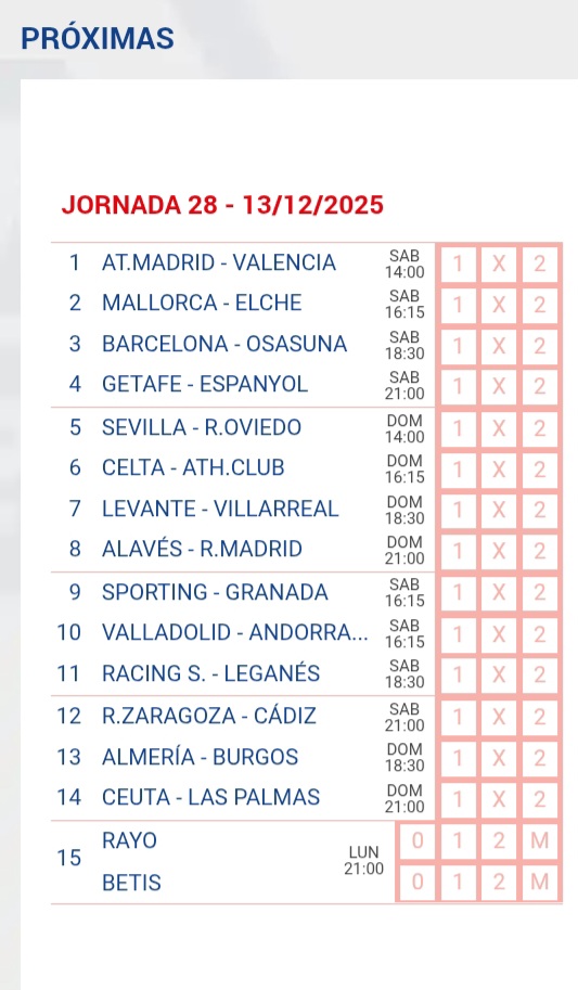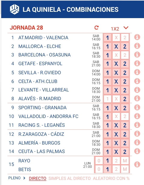 Pronóstico quiniela de la jornada 28, con partidos de La Liga y Segunda División.