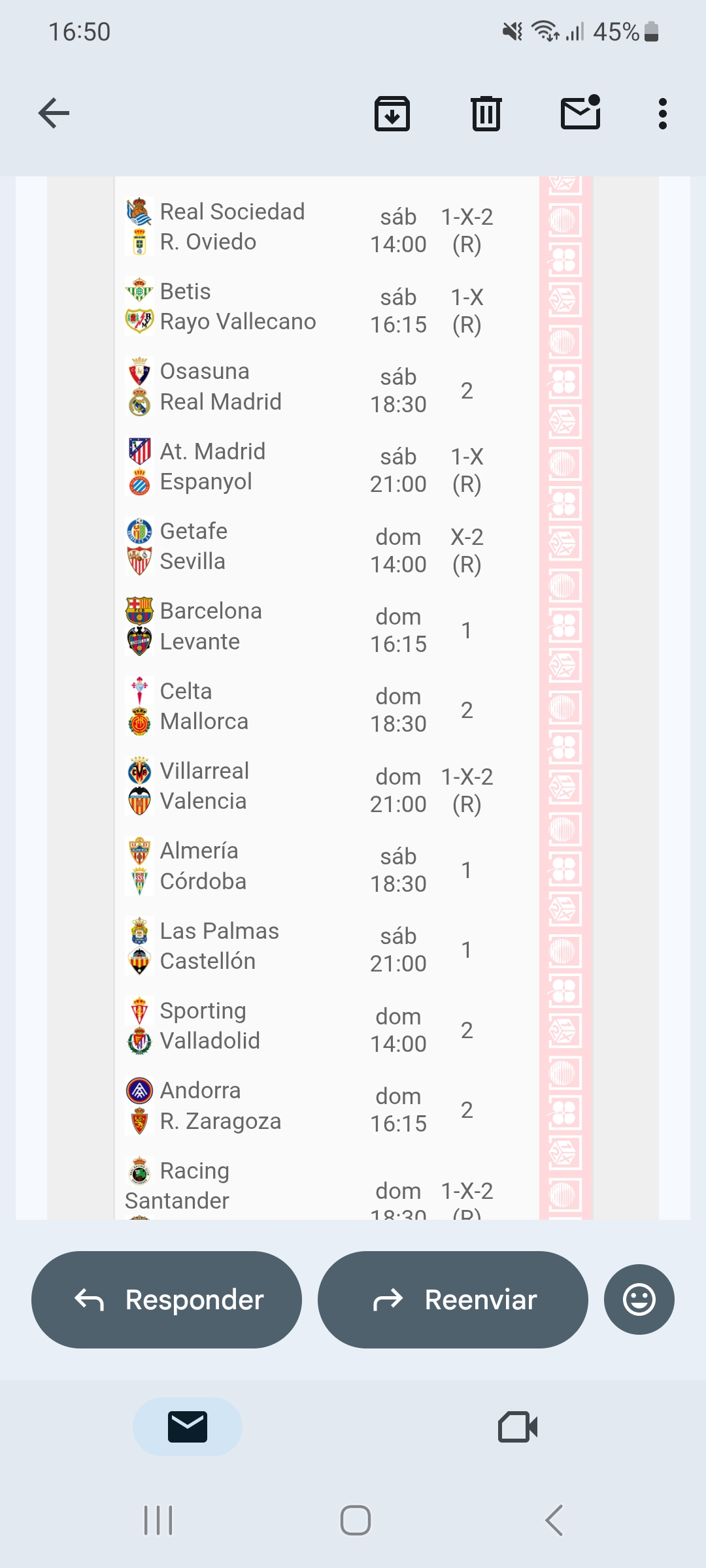 Resultados en directo de la quiniela correspondiente a la jornada 44, con partidos de La Liga y Segunda División.
