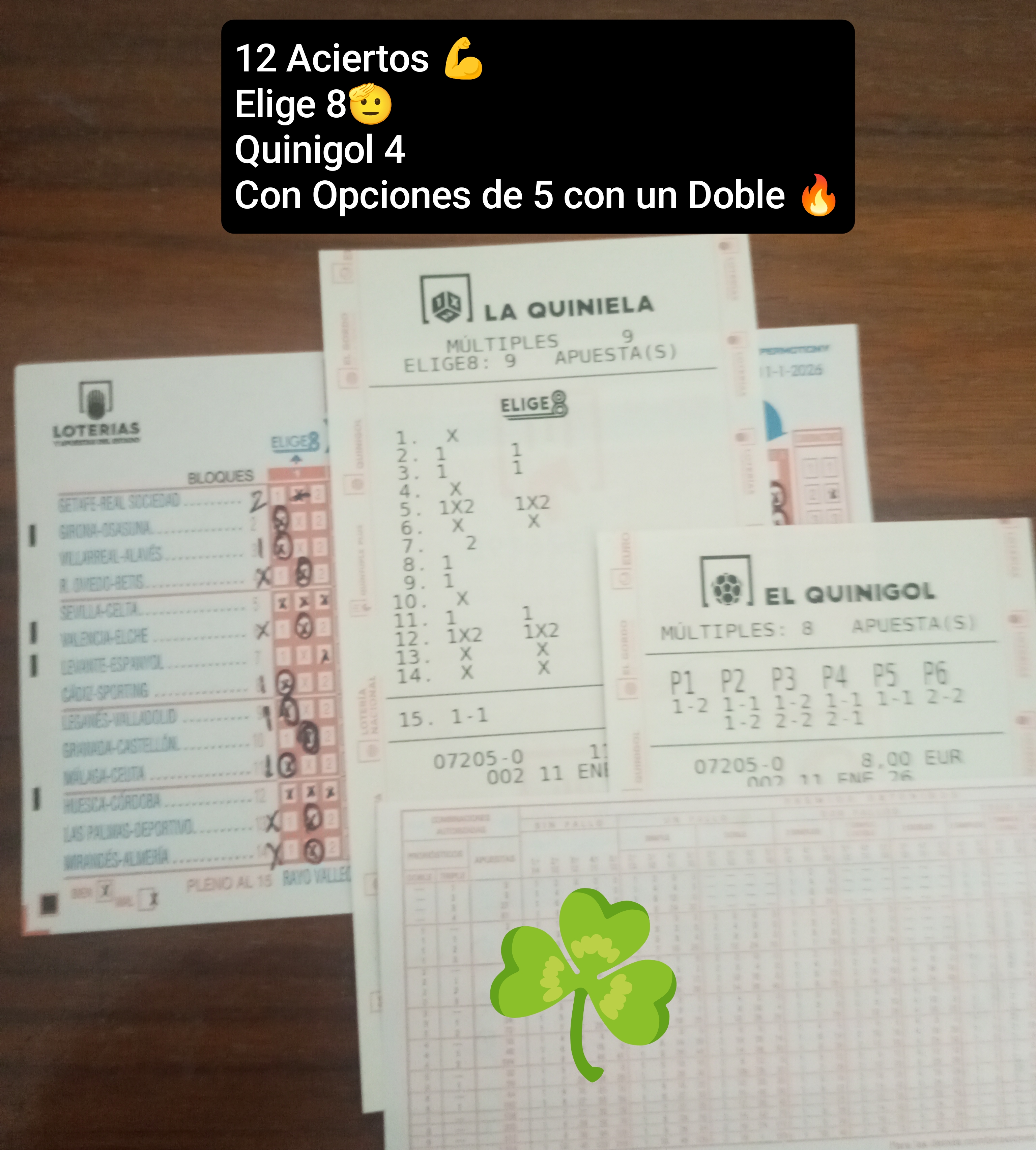 | 12 Aciertos | 636 - 848 | 353,77€ - 265,33€ |