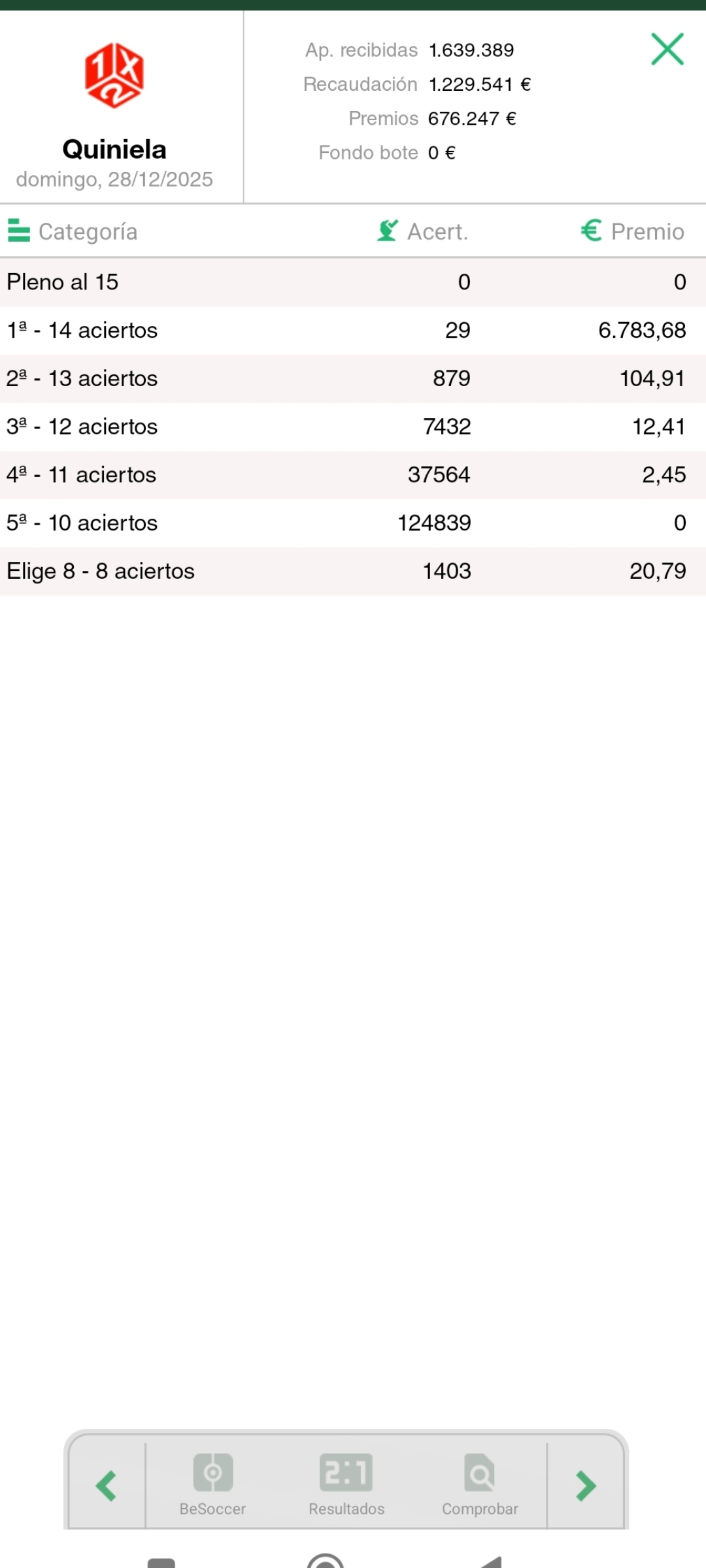 . Al finalizar cada jornada, mostramos los premios que se reparten, asi como los aciertos conseguidos.