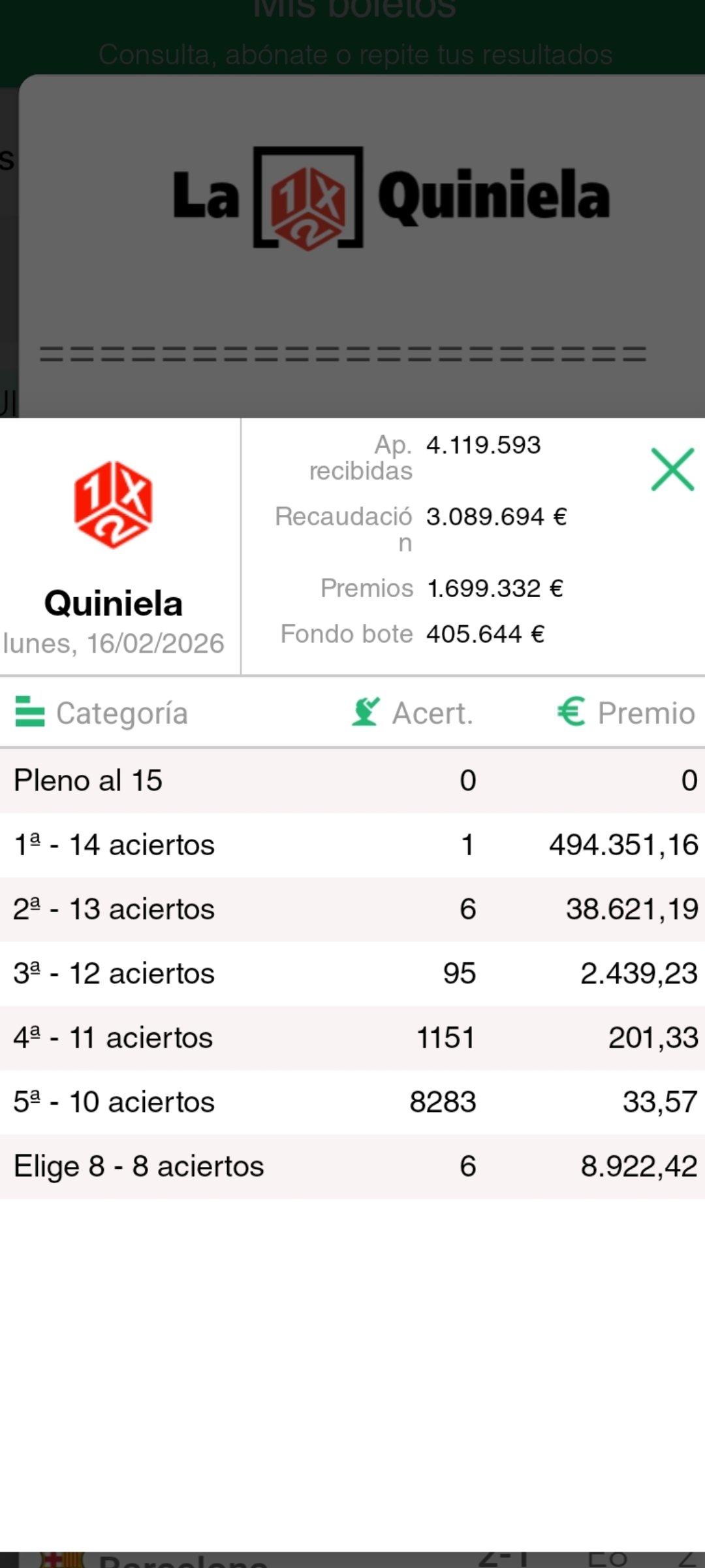 A todo esto felicitar a los k han tenidp premio en quiniela!!