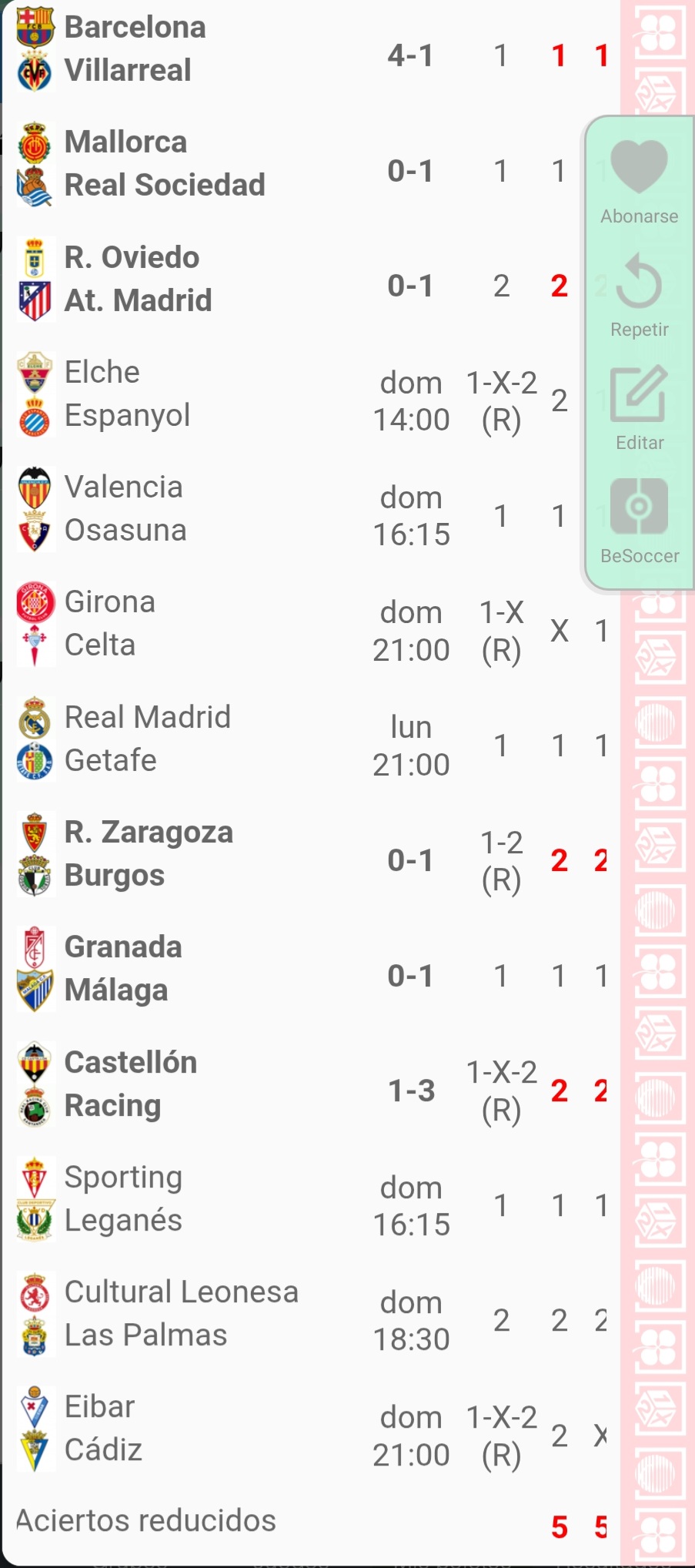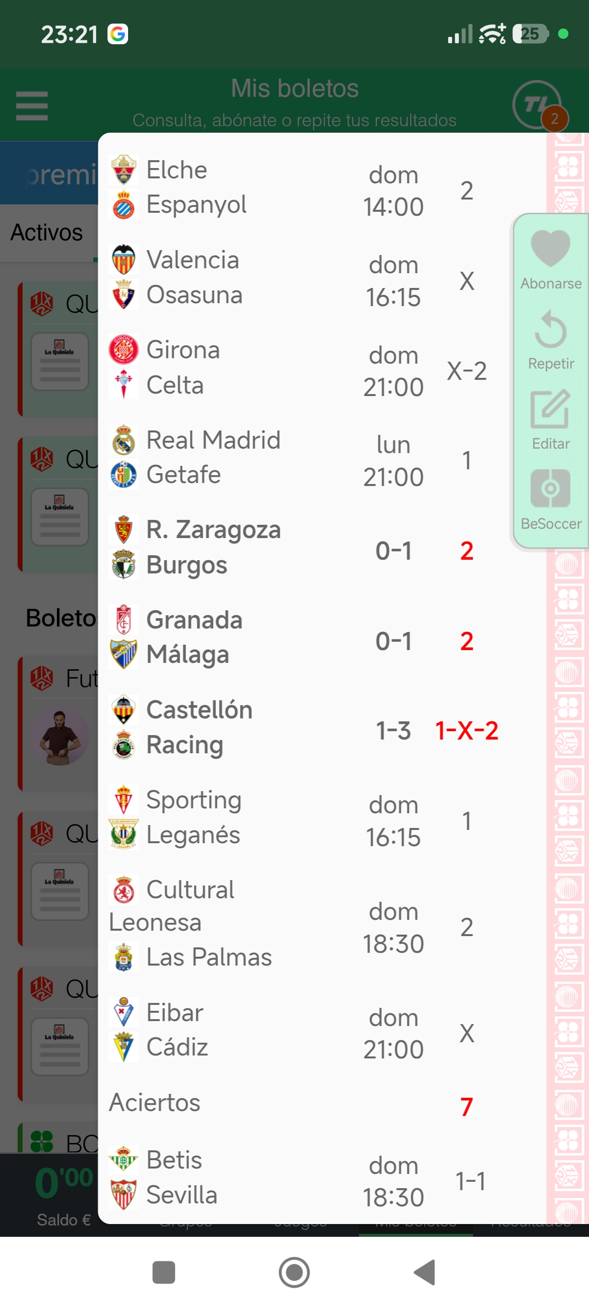 Resultados en directo de la quiniela correspondiente a la jornada 45, con partidos de La Liga y Segunda División.
