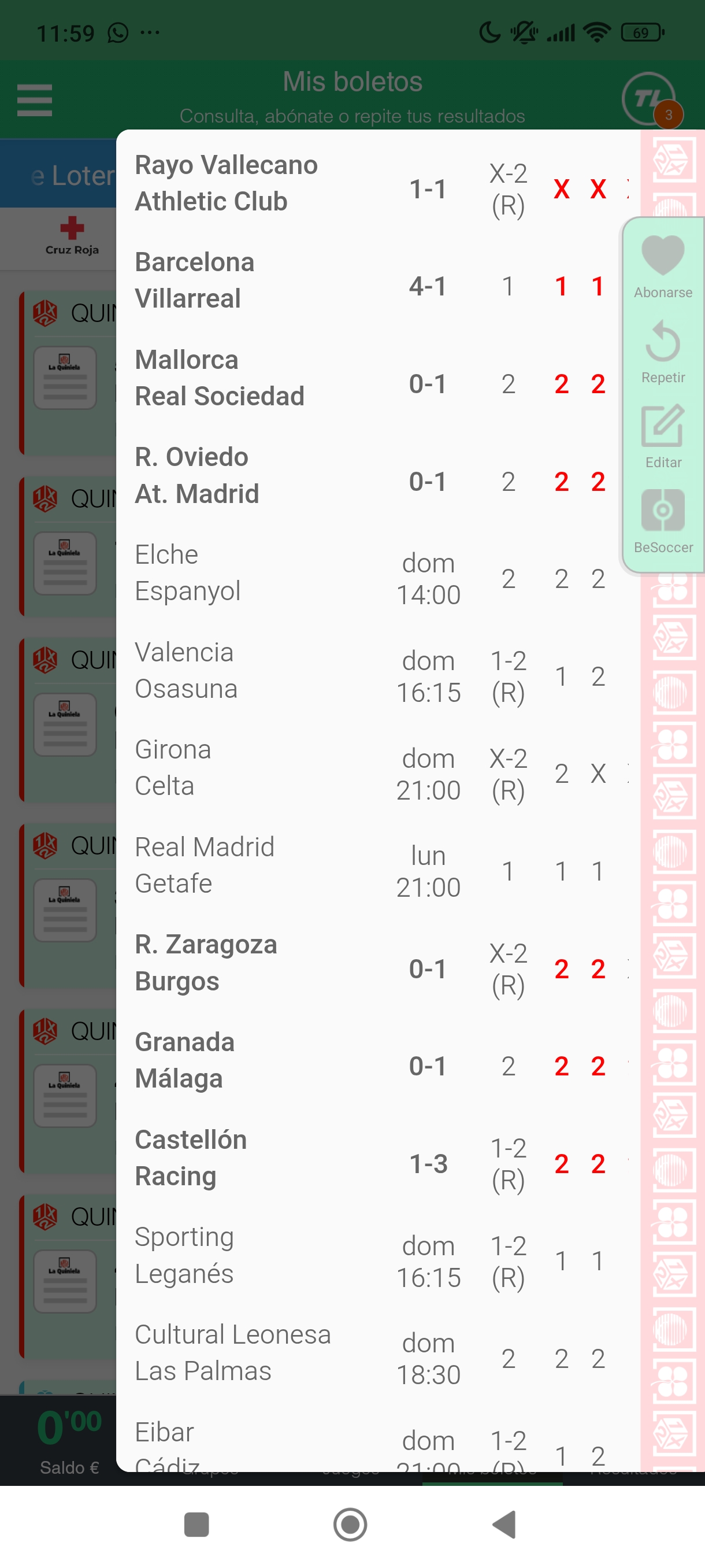Te ofrecemos los resultados de La Quiniela en directo. Además, podrás comprobar los detalles que vayan ocurriendo en cada partido haciendo clic en el icono