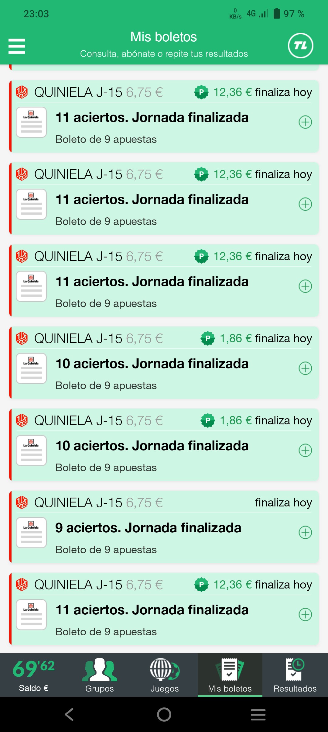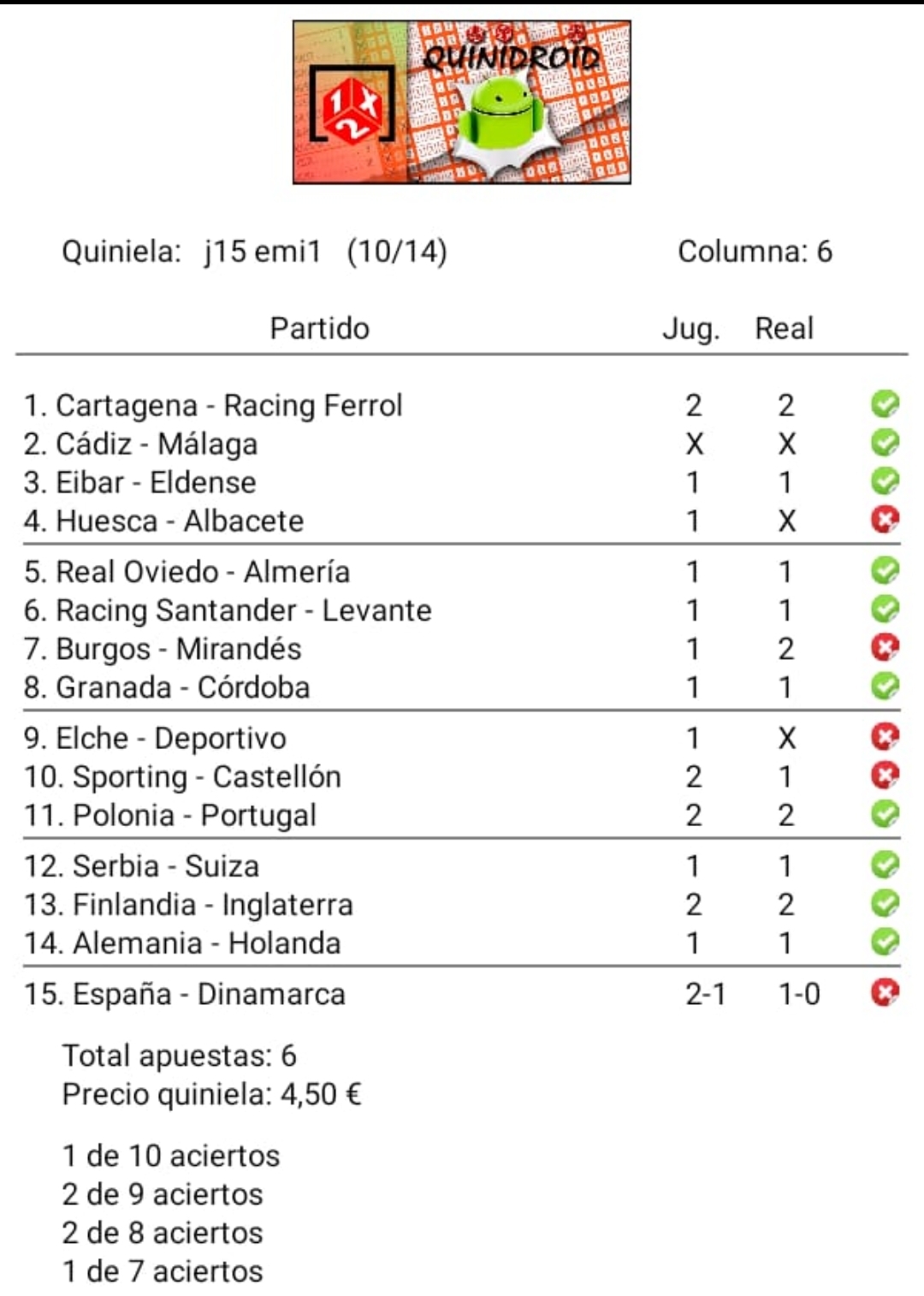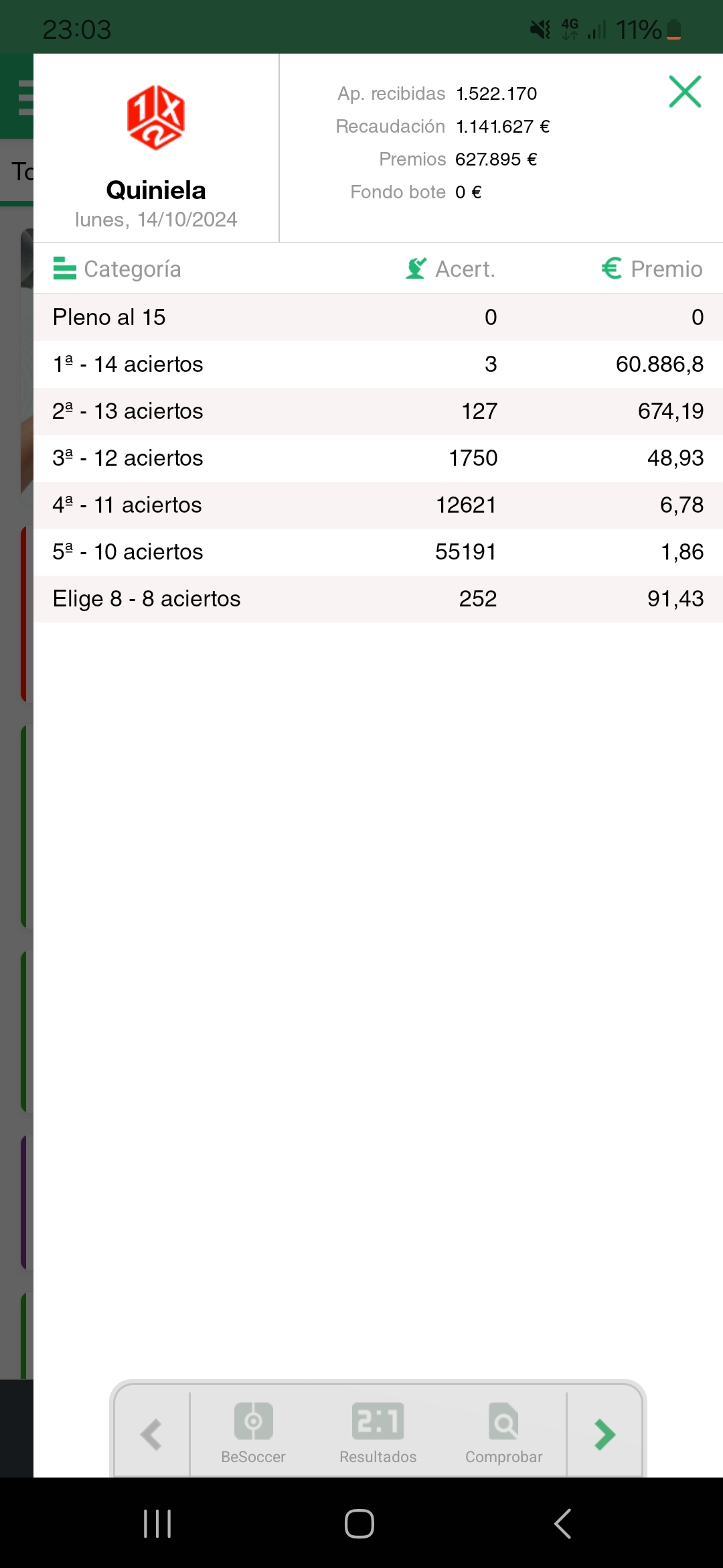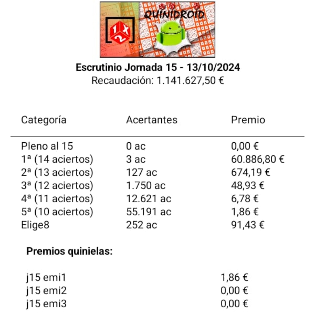 . Al finalizar cada jornada, mostramos los premios que se reparten, asi como los aciertos conseguidos.