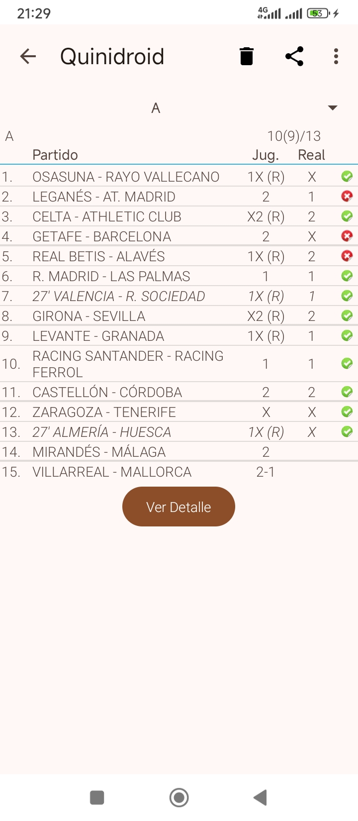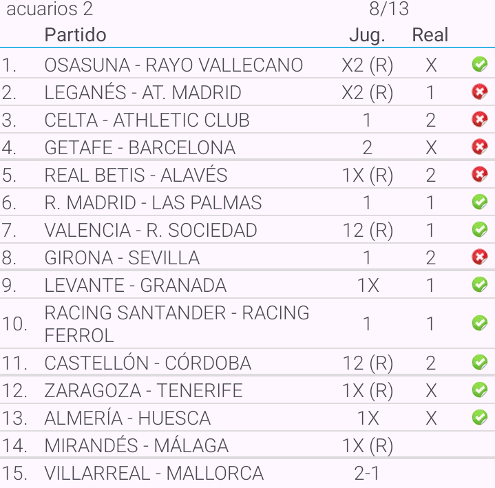 Resultados en directo de la quiniela correspondiente a la jornada 36, con partidos de La Liga y Segunda División.