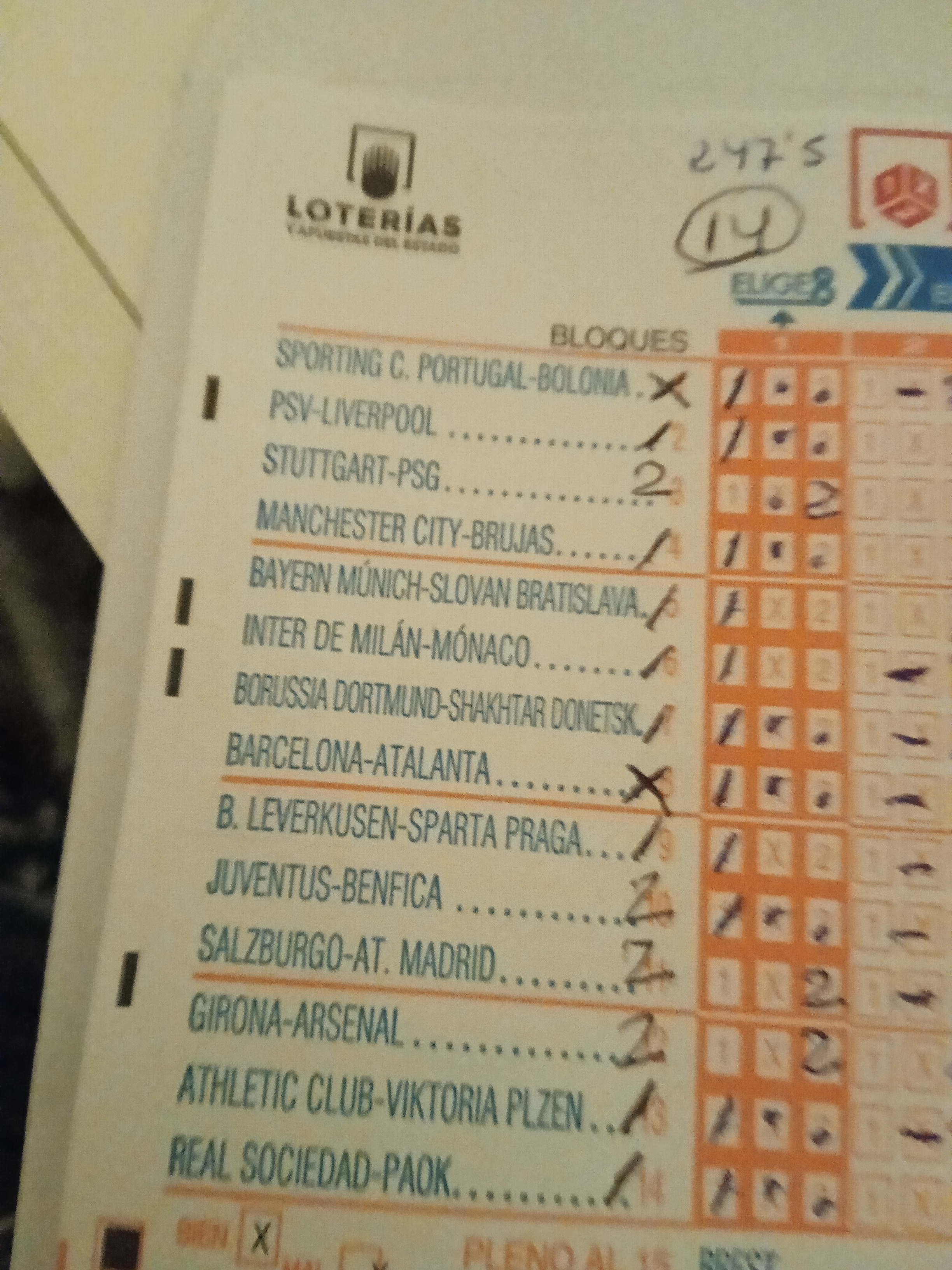 Resultados en directo de la quiniela correspondiente a la jornada 39, con partidos de UEFA Champions League y UEFA Europa League.