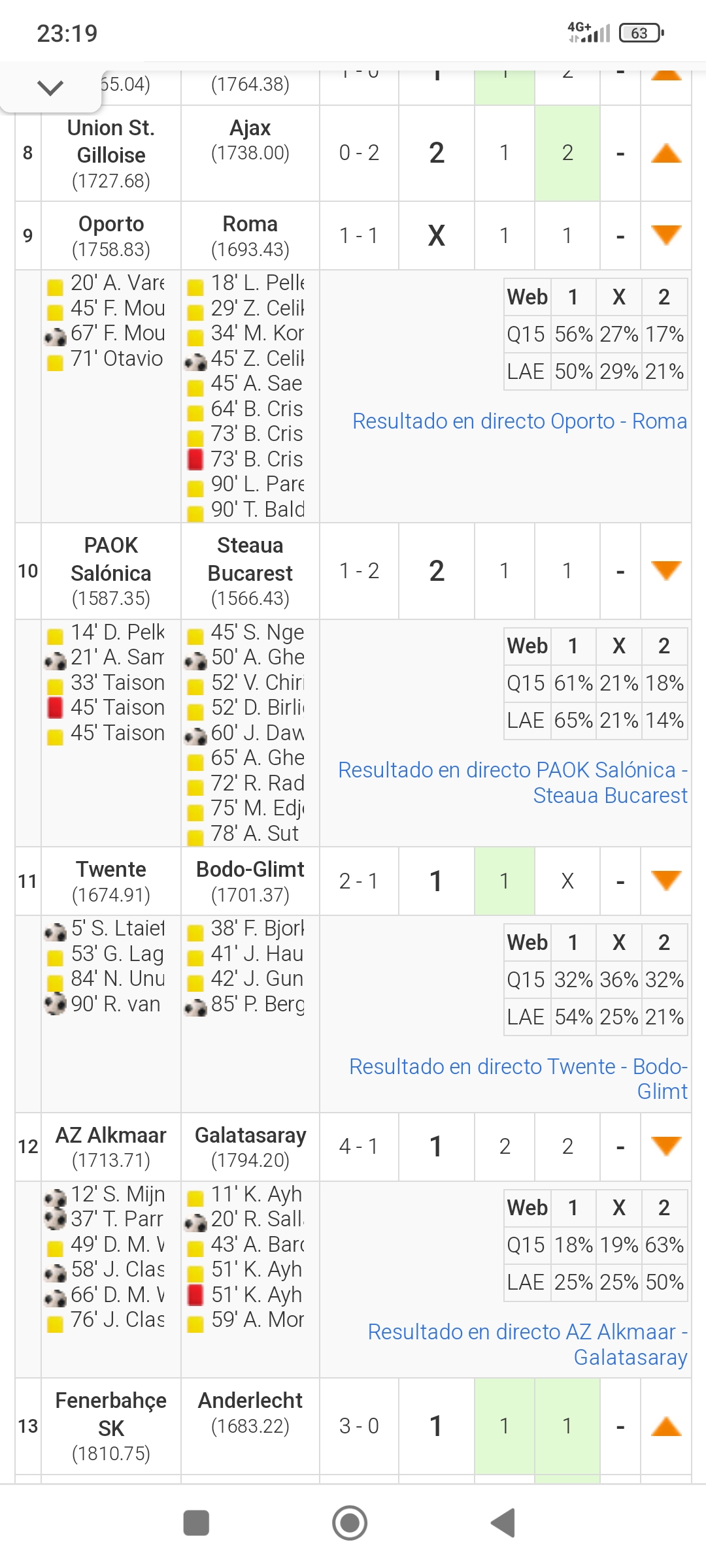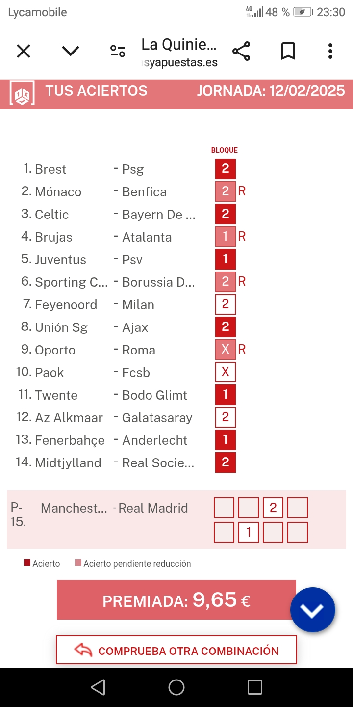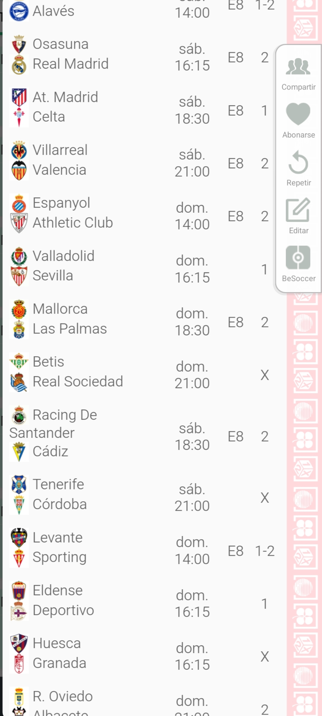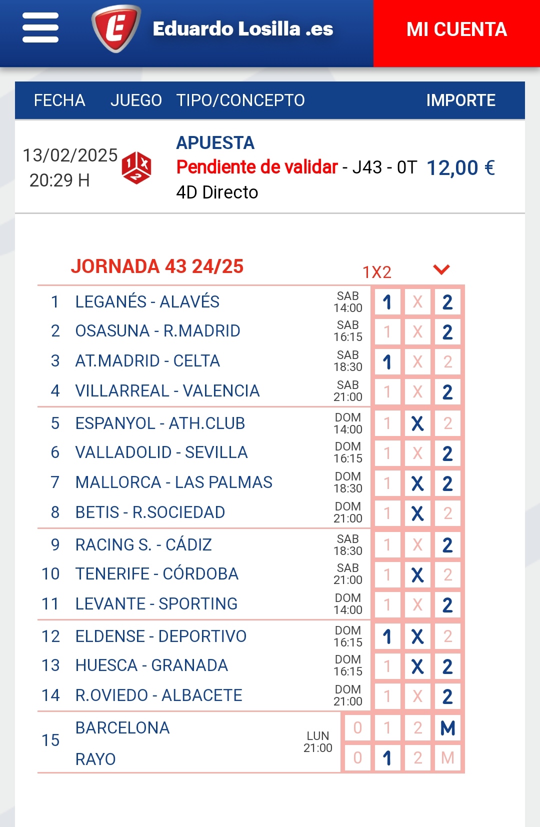 Resultados en directo de la quiniela correspondiente a la jornada 42, con partidos de UEFA Champions League y UEFA Europa League.