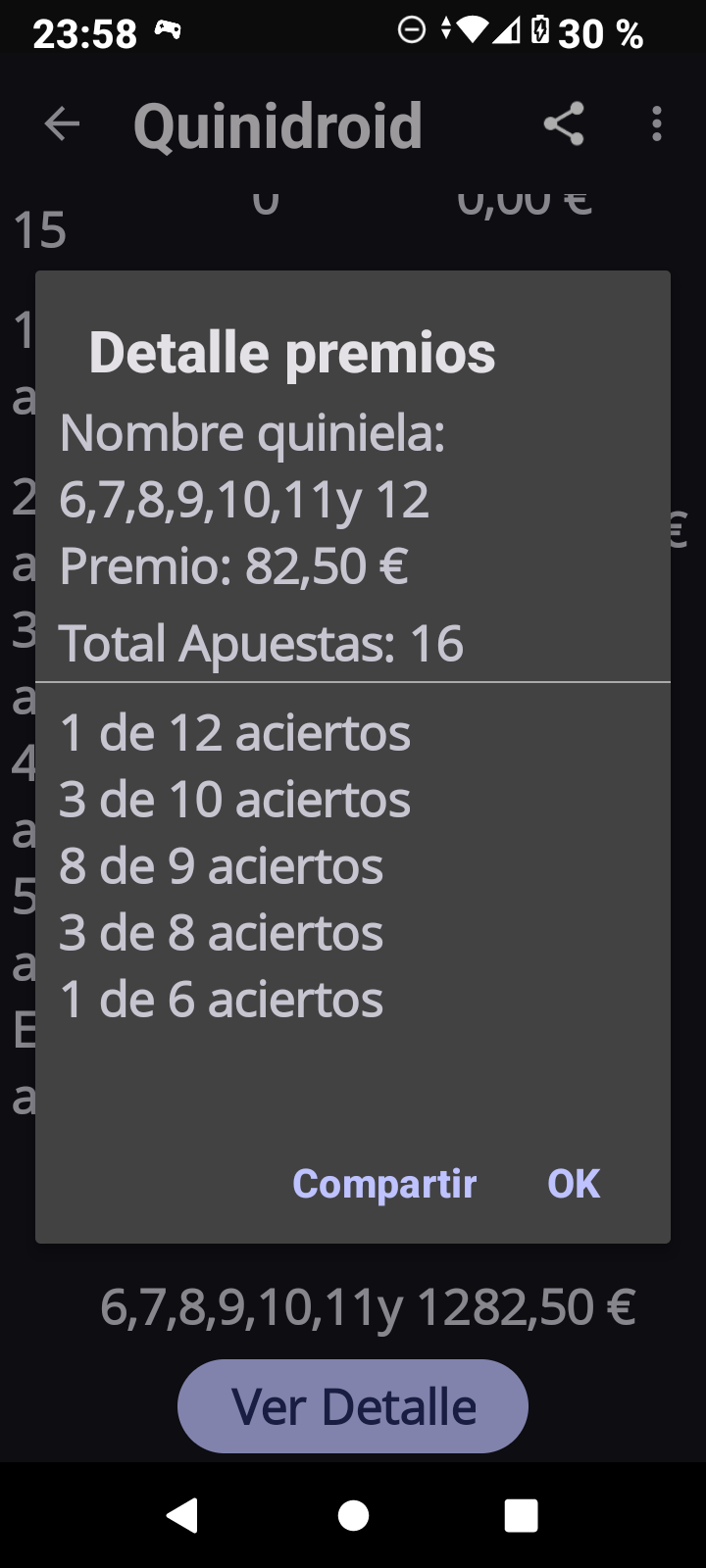. Al finalizar cada jornada, mostramos los premios que se reparten, asi como los aciertos conseguidos.