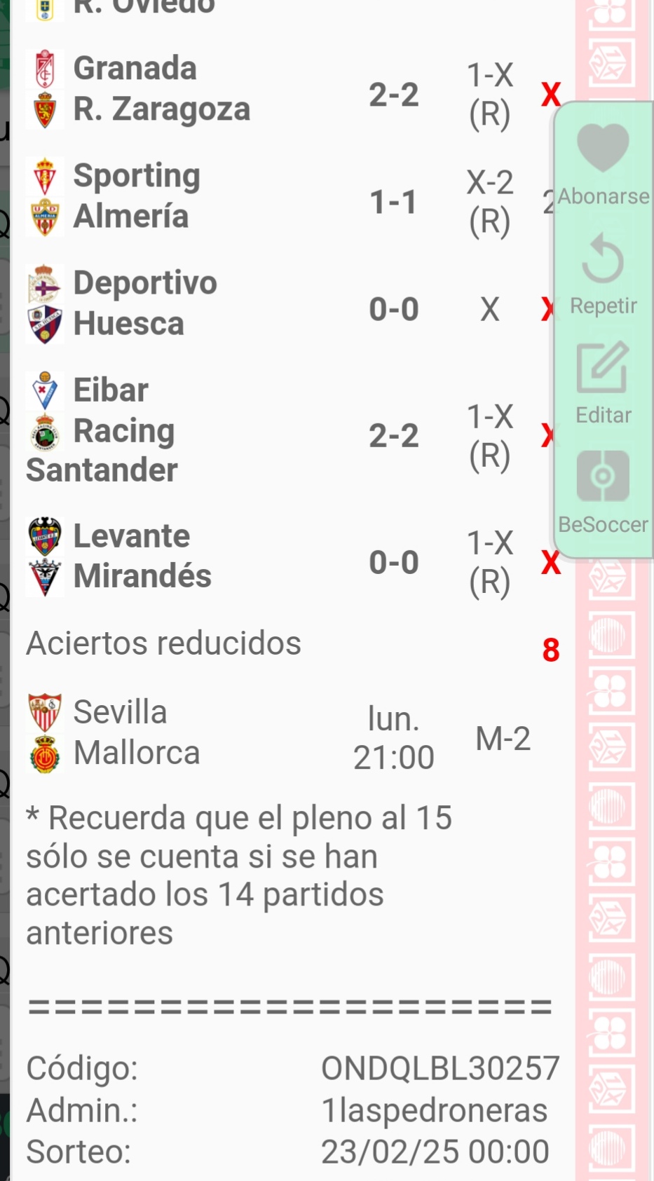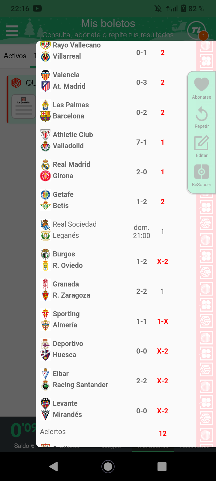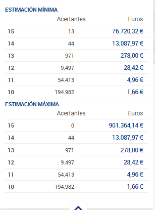 . Al finalizar cada jornada, mostramos los premios que se reparten, asi como los aciertos conseguidos.
