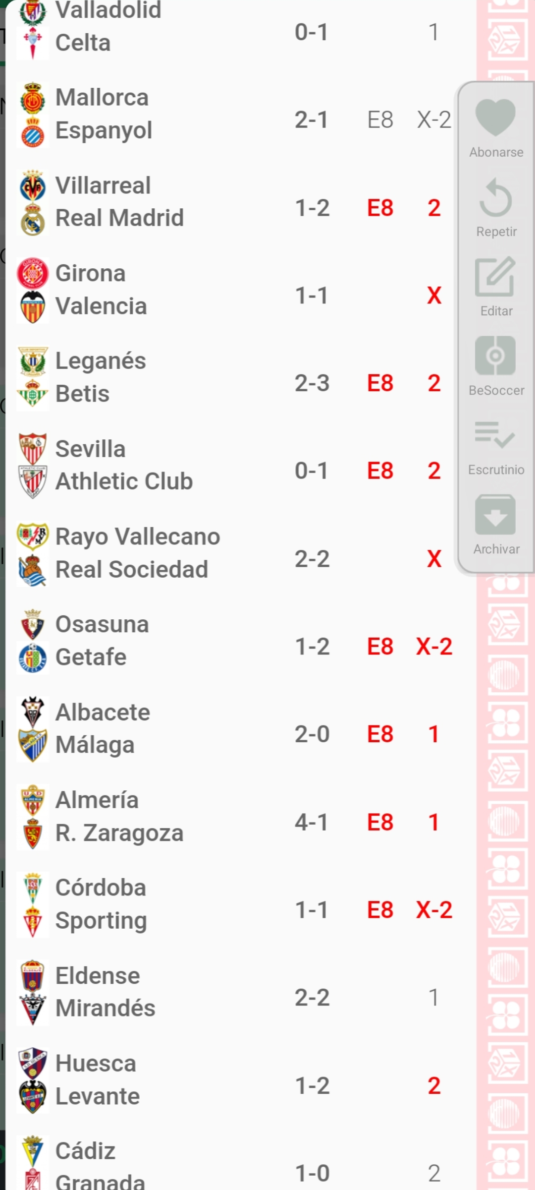 Resultados en directo de la quiniela correspondiente a la jornada 50, con partidos de La Liga y Segunda División.