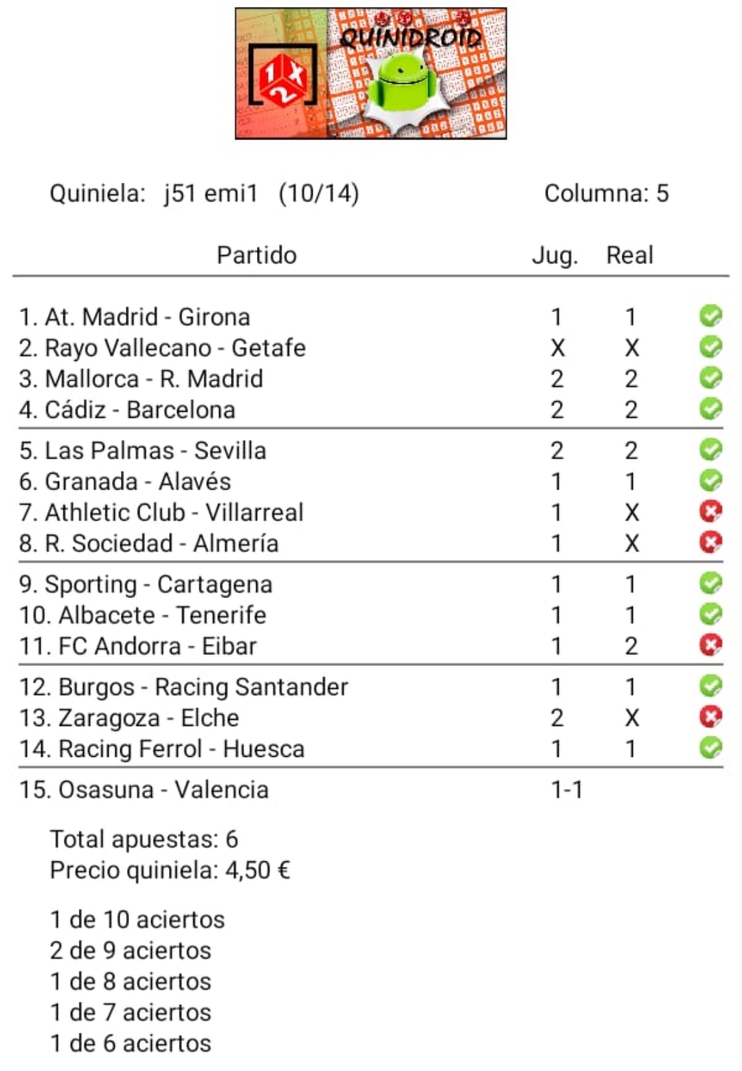 Resultados en directo de la quiniela correspondiente a la jornada 51, con partidos de La Liga y Segunda División.