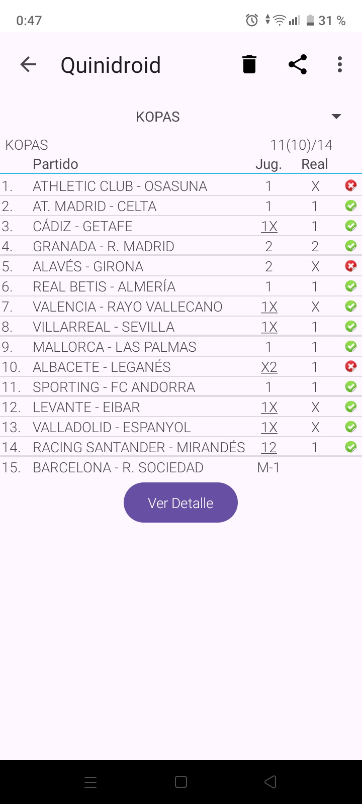Resultados en directo de la quiniela correspondiente a la jornada 56, con partidos de La Liga y Segunda División.
