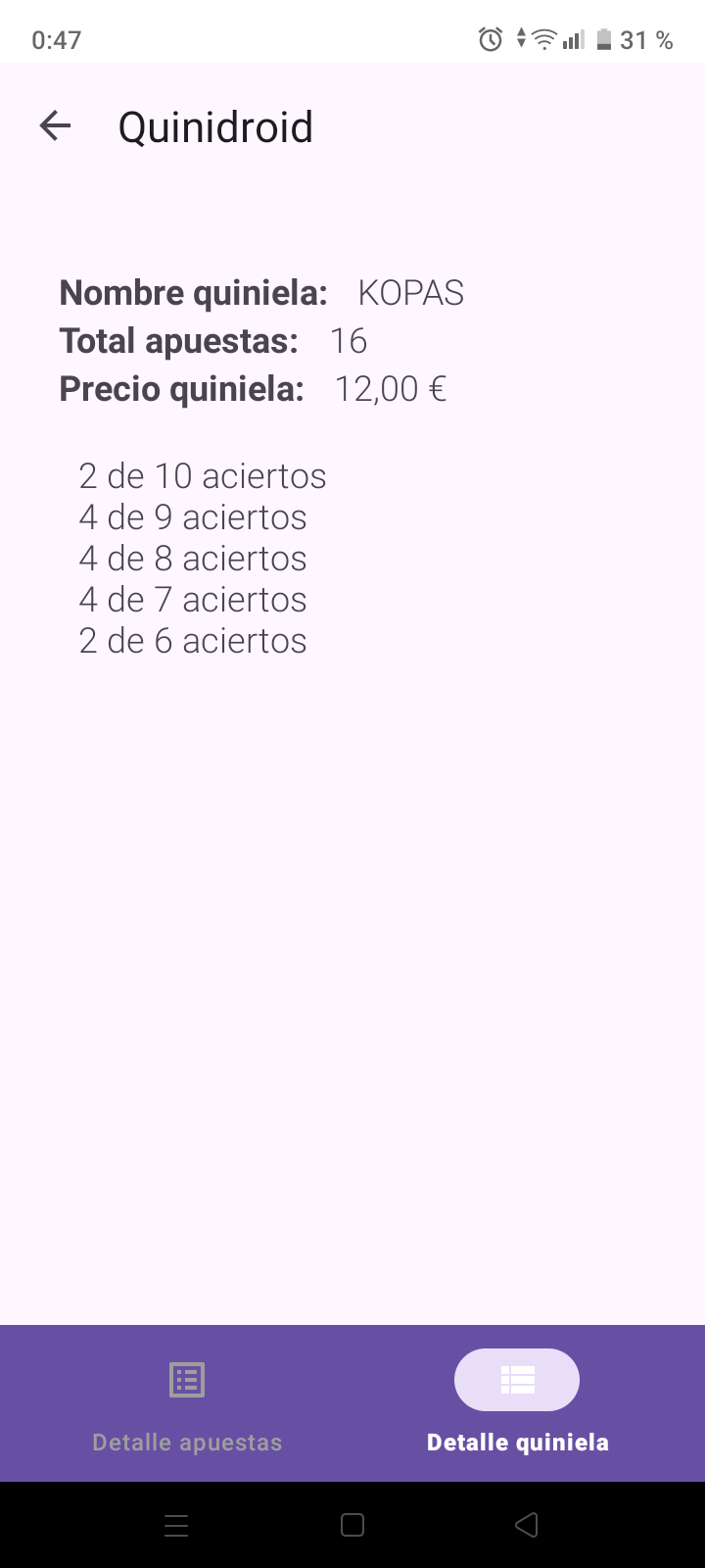 . Al finalizar cada jornada, mostramos los premios que se reparten, asi como los aciertos conseguidos.