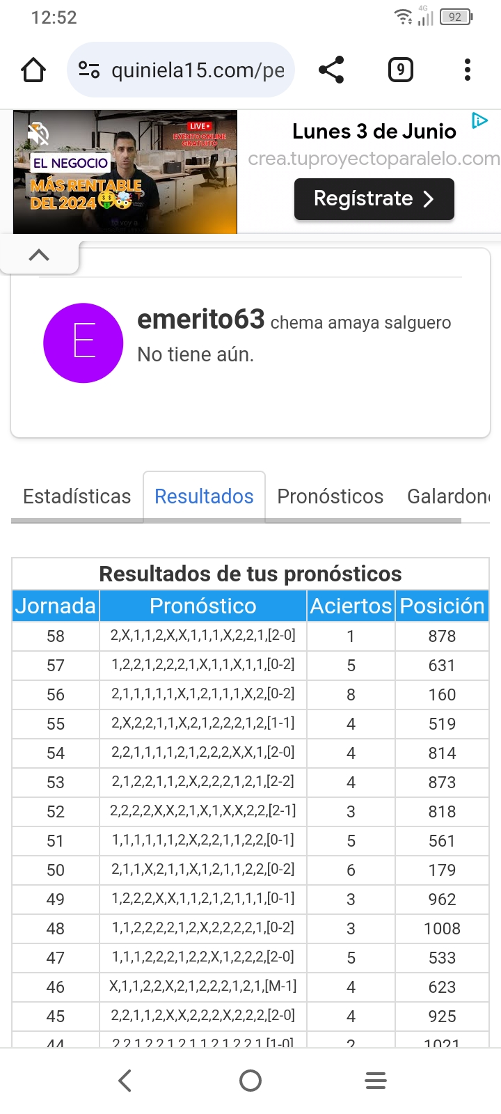 Resultados en directo de la quiniela correspondiente a la jornada 58, con partidos de La Liga y Segunda División.