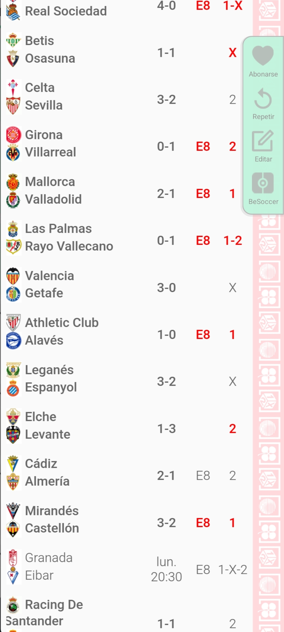 Resultados en directo de la quiniela correspondiente a la jornada 61, con partidos de La Liga y Segunda División.