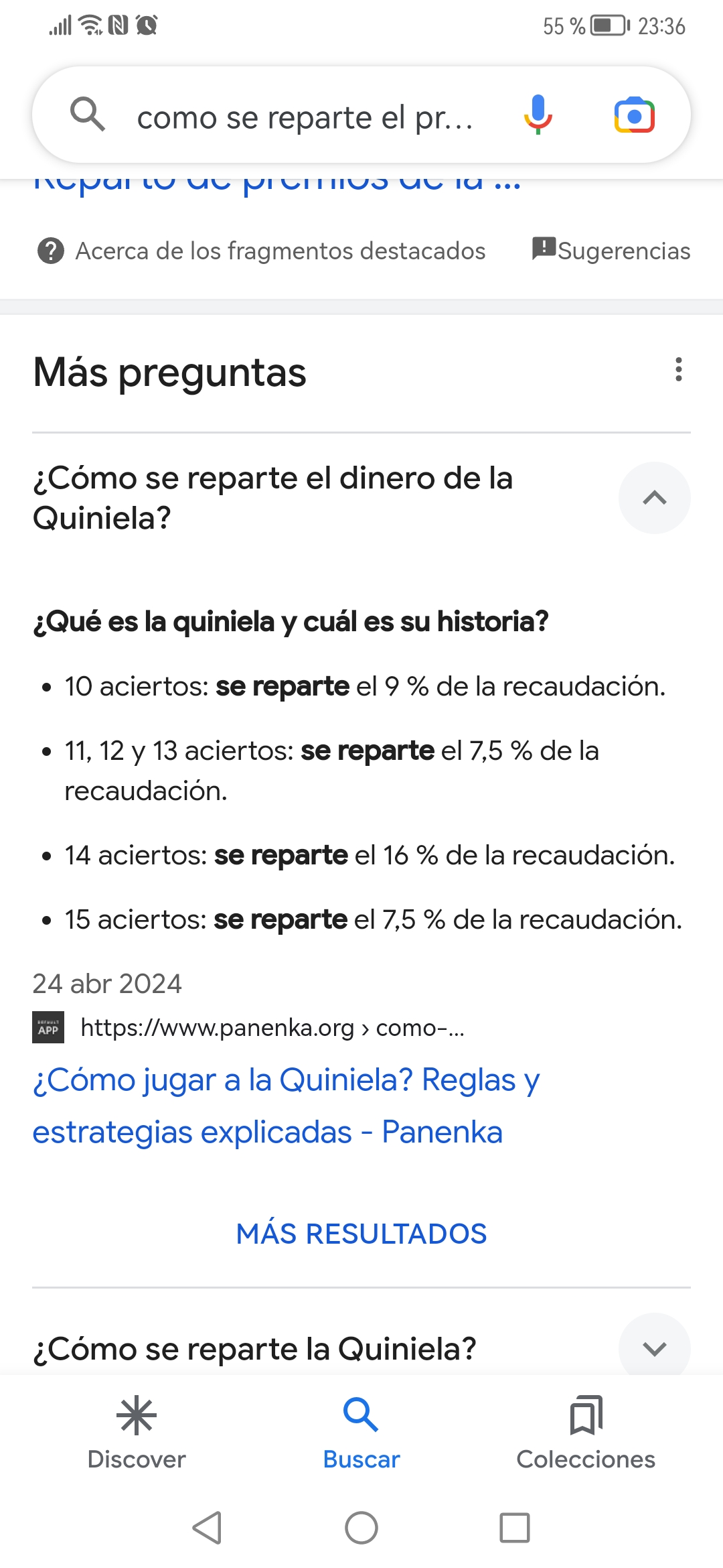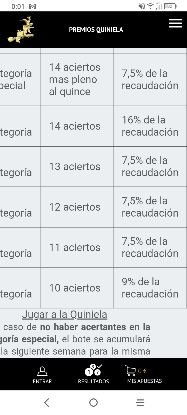 . Al finalizar cada jornada, mostramos los premios que se reparten, asi como los aciertos conseguidos.