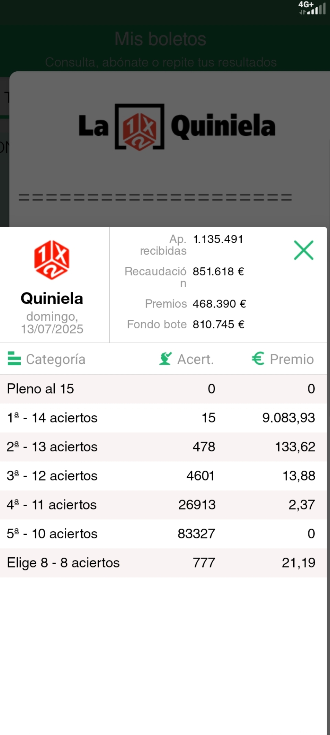 . Al finalizar cada jornada, mostramos los premios que se reparten, asi como los aciertos conseguidos.
