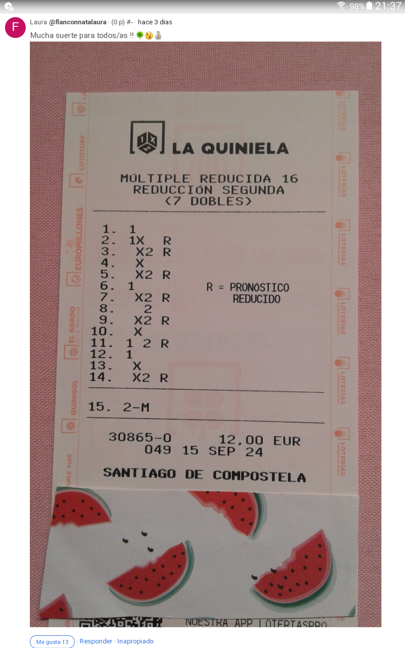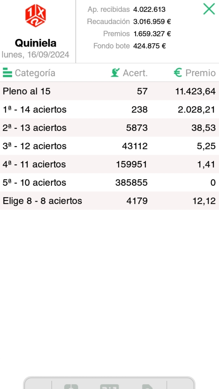 . Al finalizar cada jornada, mostramos los premios que se reparten, asi como los aciertos conseguidos.
