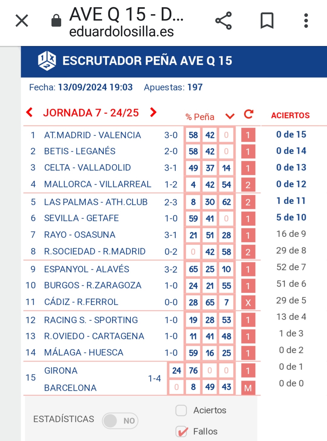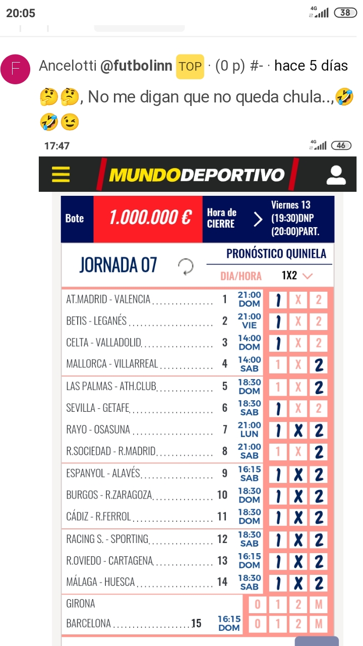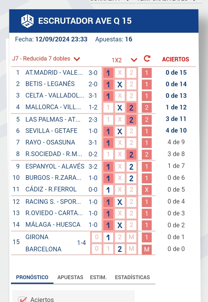 Resultados en directo de la quiniela correspondiente a la jornada 7, con partidos de La Liga y Segunda División.
