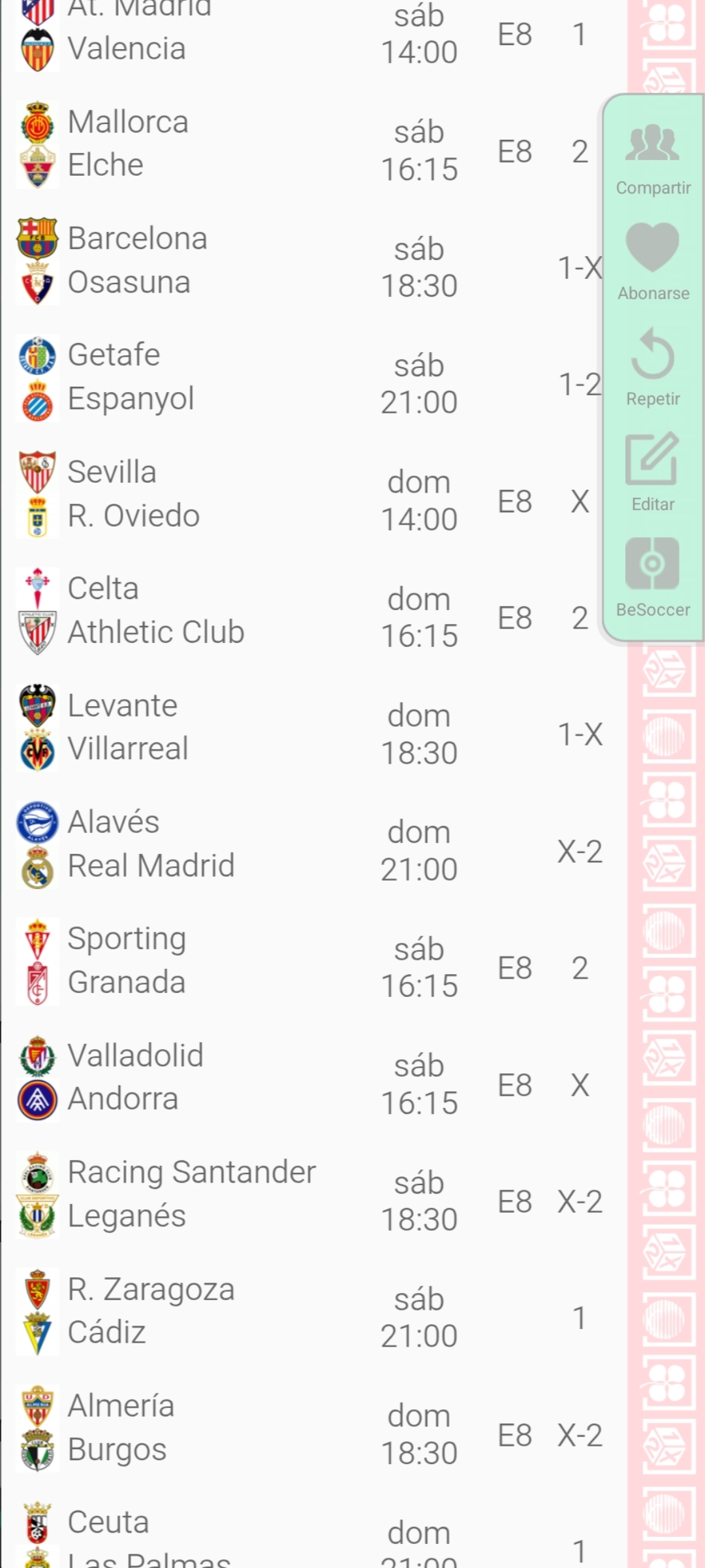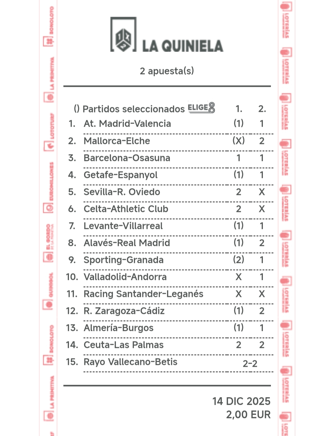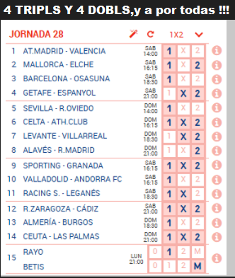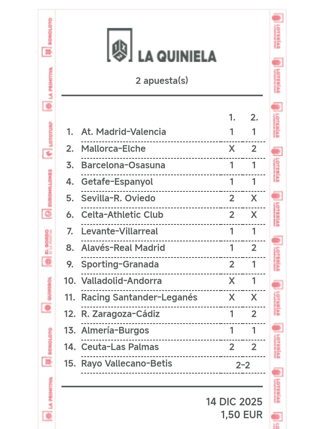 En esta página se muestra una estimación de los premios que se repartirán en la jornada cuando está en juego. Puedes simular resultados para comprobar qué premio se podría repartir en cada categoría de aciertos. Los resultados son estimativos en base a las estadísticas de los boletos sellados, no pueden ser exactos por no conocer la composición de cada uno de los boletos.