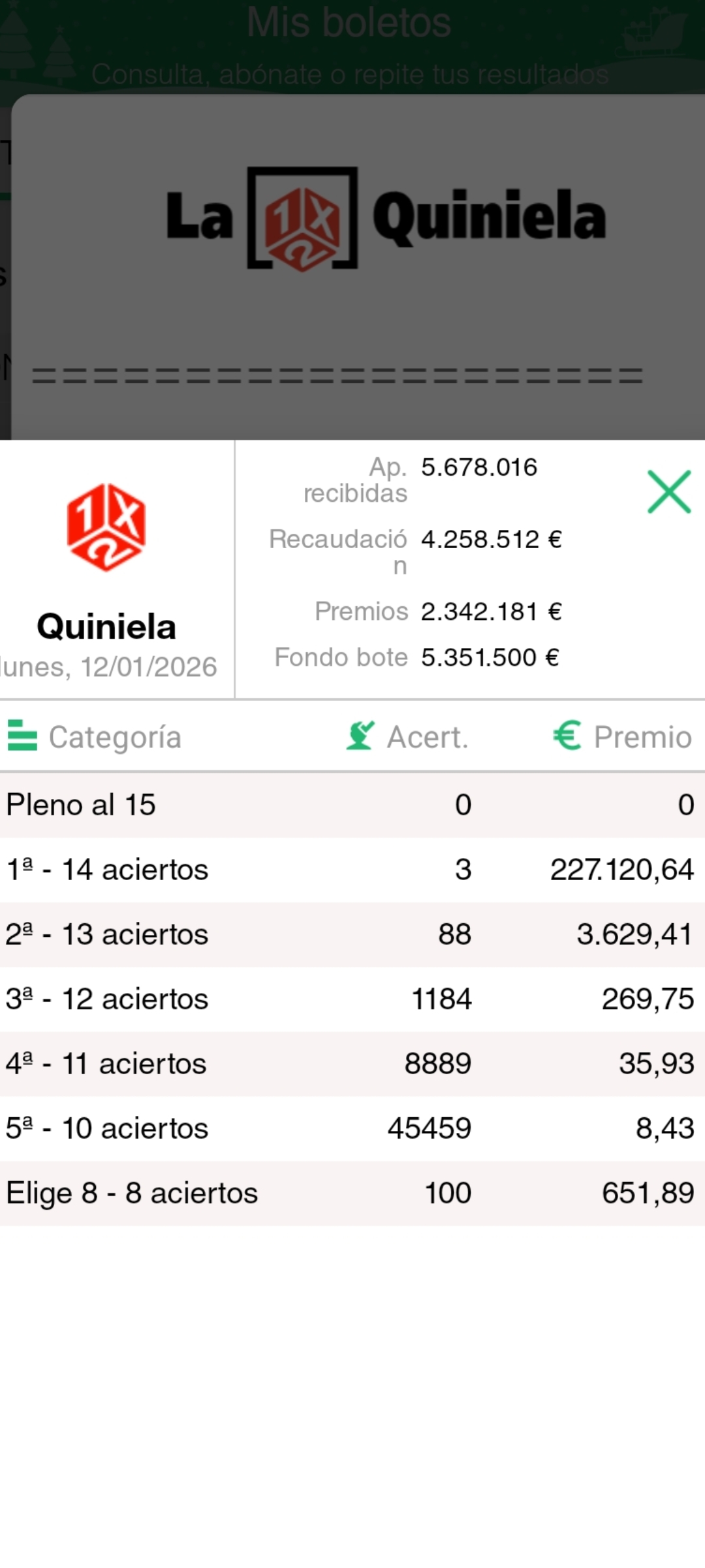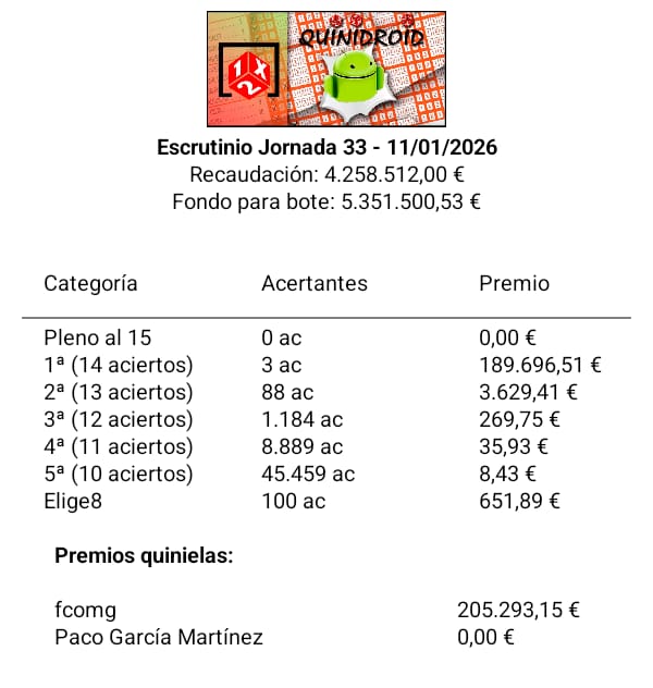 | Categoría | Acertantes | Premio |