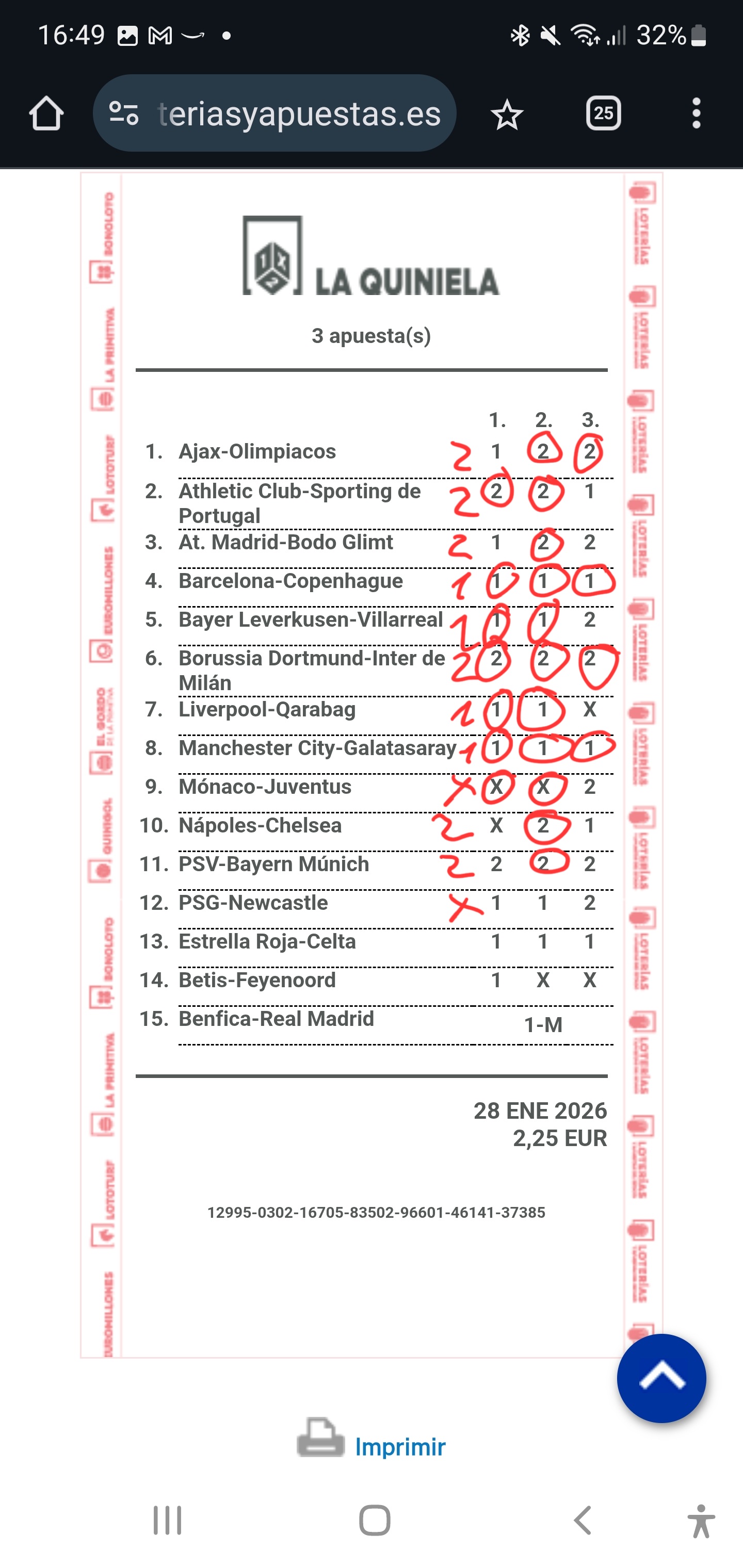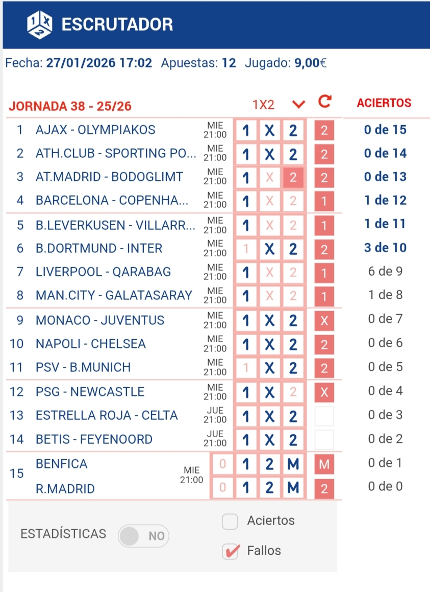 | 13 Aciertos | 26 - 193 | 3.173,08€ - 427,46€ |