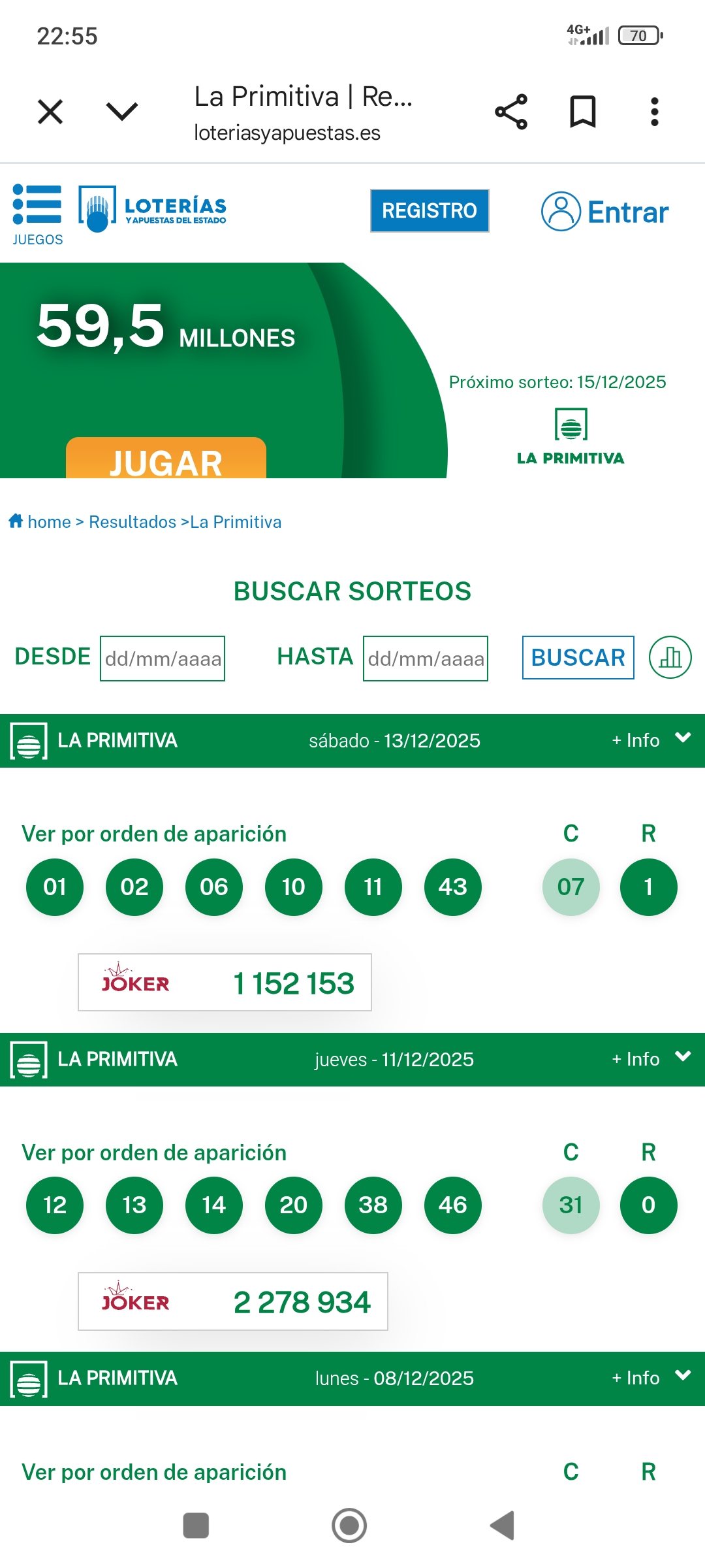 | Pleno al 15 | 0 - 7 | 0,00€ - 648.475,57€ |