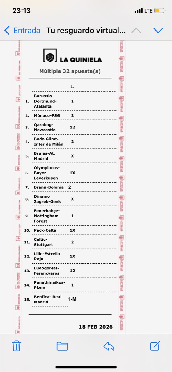| 13 Aciertos | 0 - 3.543 | 0,00€ - 23,29€ |