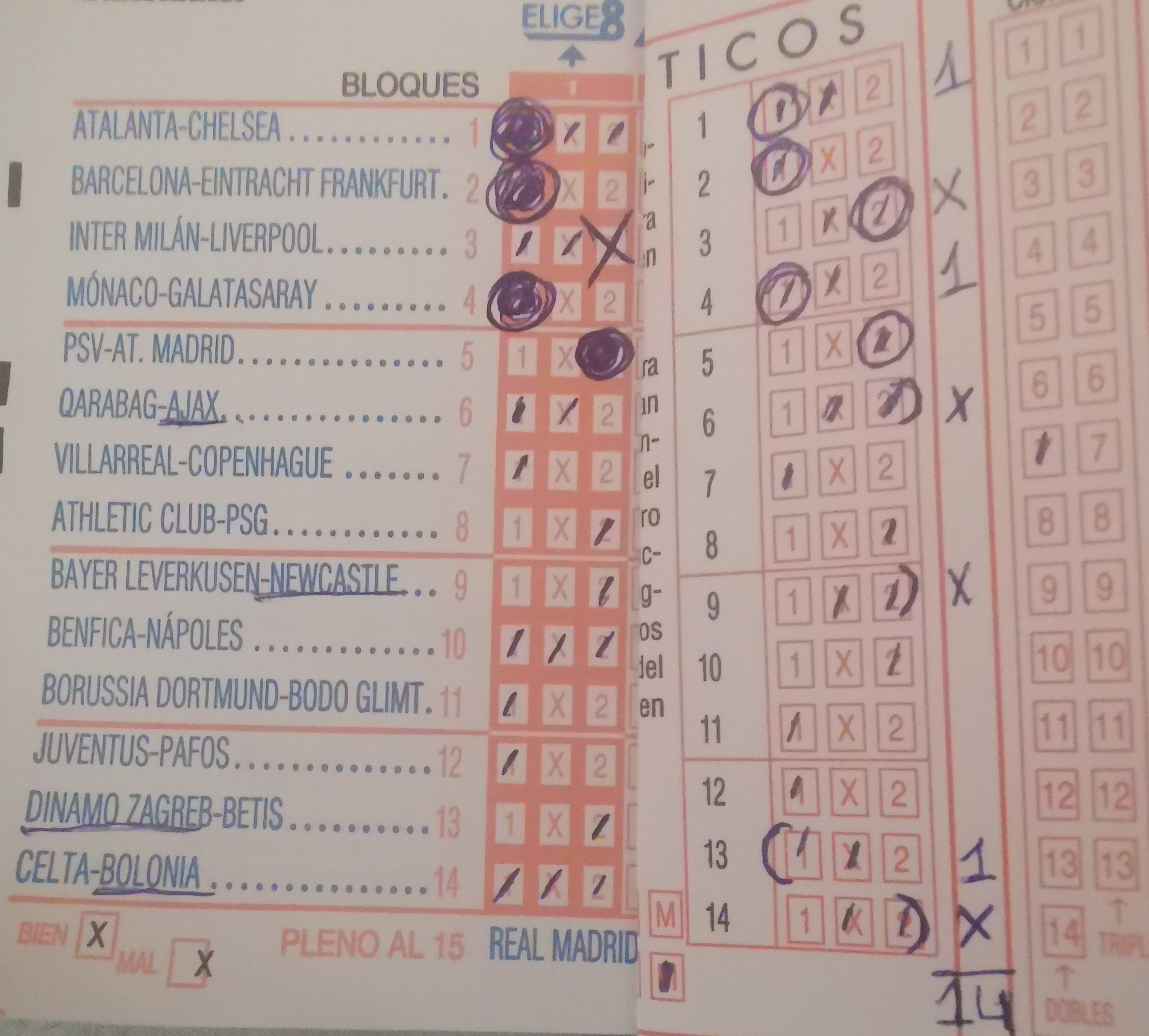 | 14 Aciertos | 0 - 240 | 0,00€ - 733,33€ |